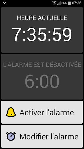 Une horloge simple créée par les auteurs de l\interface BIG Launcher, qui a remporté plusieurs prix. ✓ Facile à lire : une grande police et des couleurs très contrastées ✓ Facile à utiliser : de gros boutons permettant de changer l\alarme ✓ L\alarme sonne une fois, ou peut se répéter chaque jour ✓ Aucune autre fonctionnalité compliquée n\est incluse. C\est tellement simple ! ✓ C\est 100% gratuit ! N\hésitez pas à tester BIG Launcher si vous avez des problèmes de vue. Rendez-vous sur http://biglauncher.com pour plus d\informations.