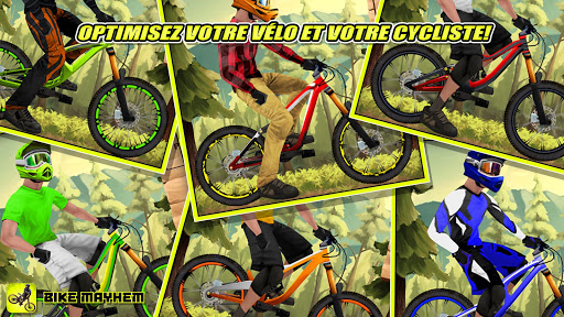 Entrez dans le monde passionnant du freestyle extrême et des courses de VTT de descente. Dévalez de belles pistes tout en vous écrasant sur des rochers et des racines, en boostant des sauts énormes, en marquant des points pour des combinaisons de figures démentes, en débloquant de meilleurs vélos et engins pour vous proclamer le Roi de la Montagne ! Participez à des courses chronométrées ou à des concours de figures libres sur 19 montagnes différentes et sur plus de 100 pistes inspirées par de véritables sites dans le monde. Débloquez plus de 80 équipements pour ajouter du style à votre cycliste et pour ajuster la vitesse, l\agilité, la force et l\énergie de votre vélo pour chaque piste. Découvrez la physique réaliste et une suspension de vélo confortable, pendant que votre vélo dévore le terrain dur et amortit les atterrissages lors des grands sauts et des chutes. Des vitesses élevées et de grands sauts impliquent des accidents spectaculaires où votre coureur dégringole en ragdoll sur la piste. Si vous utilisez votre doigt pour ramasser votre cycliste, il sera éjecté encore plus loin. Présenté par les créateurs de Moto X Mayhem. Construit avec passion pour le VTT. CARACTÉRISTIQUES : - 100+ beaux sentiers de montagne pour tous les styles de vélo - 90 articles équipement de votre cycliste et votre VTT - Des améliorations pour les cadres et les roues qui ajoute de l\impact au jeu - Des accidents de vélo épiques, de la physique ragdoll amusante et une suspension de vélo active - Trucs, roues, sauts de lapin et flips! Classements en ligne puissants ASTUCES : Si vous utilisez des points de contrôle, vous obtiendrez un maximum d\une étoile. Restez sur votre vélo pour atteindre 3 étoiles ! Se pencher pour ajouter des flips dans votre combinaison de figures. Wheelie dans et hors d\un saut à ajouter à votre combinaison de figures Les wheelies ne pompent pas votre énergie Le chronomètre ne démarre pas avant le moment où vous commencez à pédaler ou à freiner ! Saisir le cycliste et lancez-le autour de la carte que vous soyez sur le vélo ou pas. Assurez-vous de choisir la combinaison de cadre et la roue droite pour obtenir le meilleur score pour chaque piste. Utilisez les boosters pour vous aider à passer un sentier difficile ou pour obtenir la première position dans le classement. Regardez une vidéo de ce jeu de vtt complètement dingue plein d\action sur http://www.youtube.com/BestFreeGamesInc Suivez-nous @ facebook.com/bikemayhem twitter.com/BestFreeGamesCo