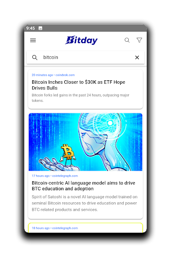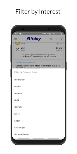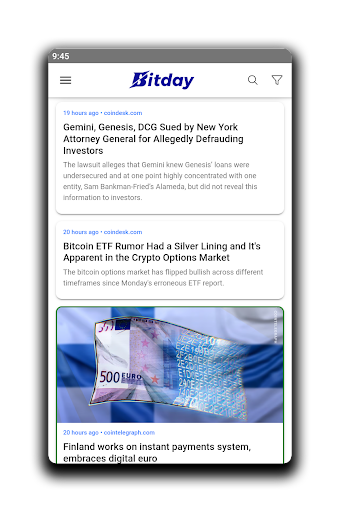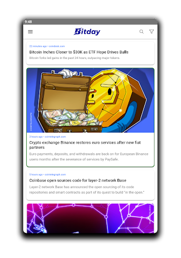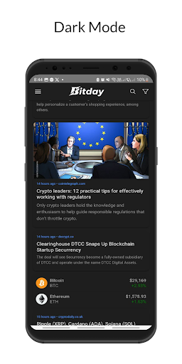 Stay ahead in the crypto world with Bitday - your go-to app for real-time news, market updates, and expert insights. Keep yourself informed from top of market trends, price fluctuations, and breaking news that can impact your digital assets. Personalize Your feed and never miss a beat. The mobile app brings you breaking news and top crypto stories from the most trusted news web platforms. Our team of dedicated moderators carefully selects and verifies news articles to deliver only the most relevant and reliable information right to your fingertips. At Bitday, we value accuracy and reliability. That\s why we source news from the most reputable and respected platforms, ensuring you get the full picture on global blockchain events, developments, and happenings. Clean and intuitive interface makes navigating the app a breeze, allowing you to access news effortlessly.