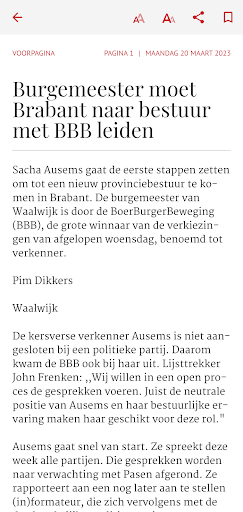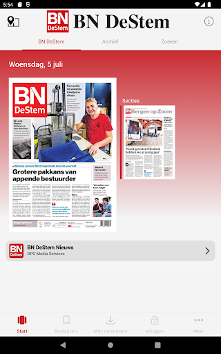 BN DeStem brengt je internationaal, nationaal en regionaal nieuws. We houden je op de hoogte van nationale en internationale topsport, maar hebben ook aandacht voor sport in de regio zoals amateurvoetbal. En we vertellen je wat er speelt in de cultuur- en mediawereld en in showbizzland. De BN DeStem - Digitale krant app is de papieren krant, maar dan op je beeldscherm. De app bevat alle regionale edities van vandaag en een archief vol oudere kranten. - Lees de editie van je eigen regio of kies uit alle andere edities. - Bepaal zelf hoe je wilt lezen: per pagina, zoals de papieren krant, of per artikel vanuit verschillende nieuwslijsten. - Eenmaal gedownload is de krant ook zonder internetverbinding te lezen en je kunt automatisch downloaden instellen. Edities BN DeStem Digitale krant bevat deze edities: - Bergen op Zoom - Breda - Etten-Leur & Moerdijk - Oosterhout - Roosendaal - Zeeuws-Vlaanderen Losse krant kopen of abonnement Heb je al een abonnement op BN DeStem? Dan kun je gebruik maken van deze app door in te loggen met je BN DeStem-profiel. Ben je je inloggegevens vergeten of weet je niet hoe je moet inloggen? Kijk bij de veelgestelde vragen op bndestem.nl/service/faq. Of bel tijdens kantooruren met onze klantenservice via telefoonnummer 088- 0561 525. Wanneer je geen abonnee bent, kun je de digitale krant aankopen via je Google Play account. Volg BN DeStem op Social Media Blijf 24/7 op de hoogte door BN DeStem te volgen op Facebook, Instagram of Twitter. Facebook: https://www.facebook.com/BNDeStem1 Instagram: https://www.instagram.com/bn_destem/ Twitter: https://twitter.com/bndestem Vragen of suggesties? Heb je vragen of opmerkingen over BN DeStem Digitale krant app of over BN DeStem in het algemeen? Neem gerust contact met ons op door een e-mail te sturen naar appsupport@dpgmedia.nl BN DeStem is een uitgave van DPG Media BV. Onze gebruiksvoorwaarden vind je hier: https://www.dpgmedia.be/gebruiksvoorwaarden En onze privacy statement vind je hier: https://www.dpgmedia.nl/privacy
