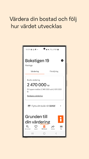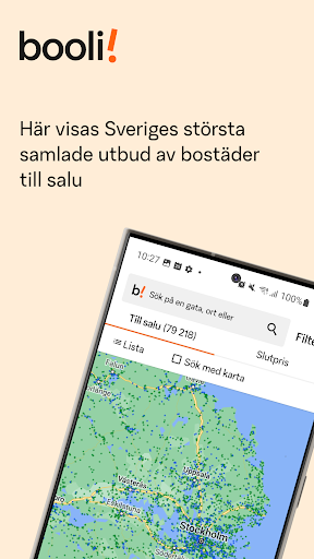 I Boolis app kan du enkelt se Sveriges största samlade utbud av bostäder till salu, snart till salu och slutpriser. Du kan också värdera din bostad och följa värdet över tid. Här skaffar du dig alltså all kunskap du behöver om den ibland knepiga bostadsmarknaden. Skapa ett konto på Booli: - Lägg till din egen bostad och följ hur värderingen utvecklas - Spara bostäder, värderingar och bevakade områden - Välj att få mejl när nya bostäder dyker upp i din bevakning Vi är en del av SBAB:s tjänster för bolån och boendeekonomi utan krångel. Tryggt och enkelt oavsett om du ska köpa, sälja eller bo.