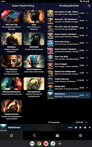 Erweitere dein Bewusstsein, steigere deine Lebensqualität und erreiche deine Ziele! Mit der Brainwave3D App hast du unbegrenzten Zugang zu allen 150+ Brainwave3D Frequenzen, geführten Meditationen und Hypnosen! Immer mehr Studien beweisen die positiven Effekte von Meditation und die Wirkung von Frequenzen auf den menschlichen Bewusstseinszustand. Tausende von zufriedenen Kunden konnten durch unsere Audios bereits achtsamer und glücklicher werden, ihre Ängste reduzieren, ihren Schlaf verbessern, Stress abbauen und ihre Intuition stärken. Nach 15 Jahren der Bewusstseinsforschung und 6 Jahren der Forschung und Verbesserung unserer Frequenzen, stellen wir diese nun in einer praktischen App zur Verfügung, damit du online wie offline grenzenlos unsere Audios nutzen kannst. Die Brainwave 3D App eignet sich aufgrund unserer vielen verschiedenen Frequenzen und Meditationen für Einsteiger und Fortgeschrittene gleichermaßen. Die App beinhaltet über hundert verschiedene Frequenzen, welche von kurzer bis langer Abspieldauer variieren können. Neben einigen Meditationen zu verschiedensten Themen beinhaltet die App auch unser Flaggschiff, das Gateprogramm. Das Gateprogramm besteht aus aufeinander aufbauende Frequenzen mit Hypnosen, welche dich sehr schnell in tiefe meditative Zustände führen. Hier können Fähigkeiten wie Gedankenstille, Visualisierung, verbesserte Traumerinnerung, Tiefenmeditation beliebig trainiert werden.