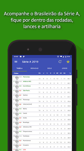 Agora você pode ficar por dentro de todas as jogadas do Brasileirao, você consegue acompanhar todas as rodadas, inclusive o histórico, classificação geral e artilharia do campeonato. Principais funções: Classificação Rodadas Artilheiros Aviso sonoro de Gol Escalação Time favorito Pressione sobre um jogo, e veja todos os lances da partida em TEMPO REAL, a atualização é automática.