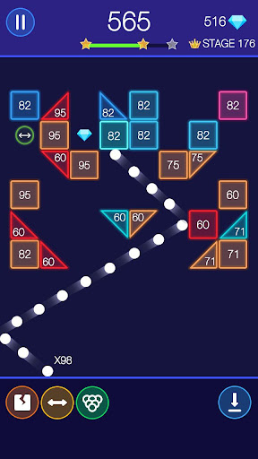 Bricks Breaker - Glow Balls is a addictive and challenging brick game. Just play it to relax your brain. Be focus on breaking bricks and you will find it more funny and exciting. How to play - Hold the screen with your finger and move to aim. - Find best positions and angles to hit all bricks. - When the durability of brick reaches 0, destroyed. - Never let bricks reach the bottom or game is over. Features - Colorful glow skins. - Free to play. - Easy game controls with one finger. - More skins of ball! - Thousands of stages! Endless game mode. - More props to get more fun! - Use 50 balls from the game start. - Achievements & leaderboard supported. - Play offline: Enjoy this game without WiFi.