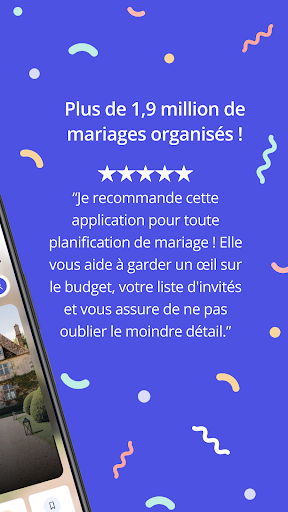 Vous allez vous marier et vous ne savez pas par où commencer ? Bridebook est un planificateur de mariage dans votre poche, où vous pouvez gérer vos tâches, votre budget, votre liste d\invités, trouver un lieu de réception et bien plus encore, tout ça gratuitement. De la check-list à la liste d\invités, on a “tout ce dont vous avez besoin pour planifier le mariage de vos rêves” (Brides Magazine). Avec plus d\un 1,9 million de mariages déjà planifiés sur Bridebook, on sait exactement comment vous offrir la journée de vos rêves. Après tout, il y a une raison pour laquelle on est \\l\application de mariage la mieux notée au monde\\ (The Telegraph) ! Alors qu\attendez-vous ? Rejoignez des centaines de milliers de couples en Europe qui ont téléchargé Bridebook. Planifiez avec votre partenaire Associez votre compte à votre partenaire pour planifier ensemble votre mariage sur l\application. Attribuez des tâches à l\aide de votre check-list partagée, gérez votre liste d\invités ensemble à partir d\appareils distincts. Ajoutez même un autre membre de votre famille pour vous aider à planifier votre mariage. Lancez le décompte Comptez les jours jusqu\à ce que vous disiez \\Oui !\\ Dès que vous entrez votre date de mariage, nous créerons le compte à rebours de votre mariage. Vous pouvez même personnaliser le compte à rebours de votre Bridebook avec des photos ! Trouvez le lieu de vos rêves Quel que soit le lieu de mariage dont vous rêvez, vous le trouverez sur Bridebook. Des châteaux aux hôtels, notre répertoire de lieux a tout ce dont vous avez besoin. Recherchez les meilleurs lieux de mariage dans votre région, ajoutez-les à vos favoris pour plus tard et contactez directement vos préférés depuis vos favoris. Au Québec comme dans tout le Canada, vous trouverez le lieu parfait. Réservez votre mariage n\importe où Vous avez toujours rêvé d\un mariage à l\autre bout du monde ? Découvrez un monde de lieux époustouflants, le tout depuis le confort de votre canapé. Communiquez directement avec les lieux via Bridebook, la planification de votre mariage à l\étranger sera facile et agréable. Planifier votre destination wedding n\a jamais été aussi simple ! Gardez un œil votre check-list Avec la check-list personnalisée, vous n\aurez plus jamais à vous soucier de manquer une tâche. On vous dira exactement quoi faire et quand le faire - et s\il manque quelque chose, vous pouvez également ajouter des tâches vous-même. L\organisation d\un mariage n\a jamais été aussi simple ! Gérez vos invités Avec votre liste d\invités suivez les RSVP, les +1, les exigences alimentaires et bien plus encore. On a même un outil pratique qui vous permet de collecter toutes les coordonnées de vos invités en un clic ! Contrôlez vos dépenses Avec le calculateur de budget de Bridebook, vous n\aurez jamais à vous soucier de dépasser votre budget ! Faites-nous simplement savoir combien vous avez à dépenser et nos algorithmes feront le gros du travail pour répartir votre budget de mariage en fonction de vos préférences et des dépenses réelles de milliers de couples. Inspirez-vous de notre équipe d\experts On a parlé aux meilleurs de l\industrie pour avoir des conseils d\initiés et d\experts sur tous les aspects de la planification de votre mariage. Que vous vous demandiez comment commencer votre liste d\invités, que vous recherchiez des conseils pour réduire vos coûts ou que vous recherchiez quelques idées de décorations DYI, nous avons ce qu\il vous faut. Lisez la politique de confidentialité ici : https://bridebook.com/ca-en/privacy-policy