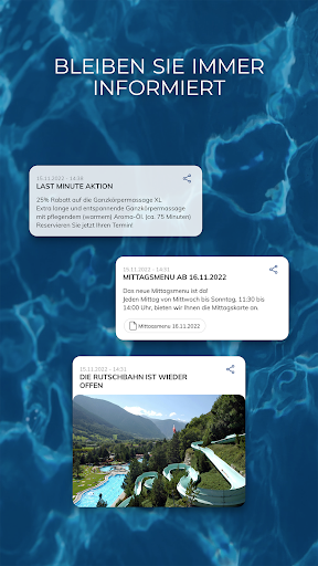 Getreu unserem unternehmerischen Motto „Eintauchen und entspannen“möchten wir unseren Gästen ein entspannendes Bade- und Wellnesserlebnis bieten. Kommen Sie vorbei und besuchen unsere neuen Anlagen: Wir freuen uns auf Sie.