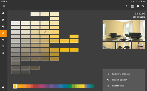 Mit dieser kostenlosen App haben Sie alle Produkte mit Datenblättern, Videos und Broschüren, alle Farbtöne und Oberflächenstrukturen und auch die Öffnungszeiten und Kontaktdaten zu allen Brillux Niederlassungen immer zur Hand. Über verschiedene Such- und Scanfunktionen sind die Infos schnell zu finden, der Warenkorb ermöglicht Geschäftskunden eine direkte Bestellung. Produkte Unterteilt in die verschiedenen Sortimente finden Sie hier Beschreibungen und Informationen zu den Brillux Produkten. Über die Suchfunktion oder den Codescanner können alle technischen Infos und Datenblätter und Produktvideos im Handumdrehen angezeigt und auf Wunsch per E- Mail versendet werden. Geschäftskunden können über den Warenkorb alle Produkte – als Standardware oder abgetönt über das Brillux Farbsystem – zur Werkstatt oder direkt zur Baustelle bestellen. Je nach Einstellungen der Sprache und Region im iOS-Betriebssystem werden beim Online-Update die verschiedenen Landessortimente in entsprechender Sprache in die App geladen. Farbtöne und Muster Machen Sie Ihr Mobilgerät zum Beratungsinstrument in Sachen Farbgestaltung: Aus verschiedenen Quellen steht Ihnen eine grenzenlose Vielfalt an Farbtönen und strukturierten Oberflächen zu Wand- und Bodenbelägen zur Verfügung. Stöbern Sie in den digitalen Farbfächern oder im systematisch aufgebauten Farbatlas. Die Brillux Stilkarten liefern Inspirationen zu Farbharmonien. Über die Funktion \Produkt abtönen\ lässt sich direkt prüfen, welche Produkte in diesem Farbton mischbar sind. Farbtonsuche Für eine gezielte Suche nach bestimmten Tönen geben Sie einen Farbtonnamen in das Suchfeld ein. Hier erhalten Sie Zugriff auf hunderttausende weitere Farbtöne. Farbtonscanner \Pablo\ und \Color Diamond\ Mit dem \Pablo\ und dem neuen \Colr Diamond\ lassen sich zwei verschiedene Farbtonscanner via Bluetooth mit der Brillux App verbinden, um hierin mit den ermittelten Farbtönen weiterzuarbeiten. Codescanner für EAN- und QR-Codes Scannen Sie mit Ihrem iPhone auf der Baustelle den EAN-Code von einem Etikett und sehen Sie unmittelbar alle Informationen, Praxismerkblätter und Sicherheitsdatenblätter zum Produkt. Mit einem weiteren Fingertipp sind die Daten per E-Mail versendet oder der Artikel über den Warenkorb bestellt. Über den Scan von QR-Codes aus Broschüren oder Anzeigen navigieren Sie innerhalb von Sekunden und ganz ohne Tastatur zu Videos oder weiteren Inhalten. vCard-Codes auf Visitenkarten ersparen Ihnen das manuelle Abtippen der persönlichen Daten Ihrer Geschäftskontakte. Speichern Sie einfach die Daten mit einem Scan im Adressbuch ab. Mediathek Broschüren und Videos zu Brillux Produkten, Systemen und Serviceleistungen. Mein Brillux Verwenden Sie Ihre „Mein Brillux“-Zugangsdaten auch für die Anmeldung in der Brillux App, um die Bestellfunktion für Geschäftskunden freizuschalten. Standorte Für den kurzen Draht zum Brillux Serviceteam stehen in der App für jede der über 180 Niederlassungen die Öffnungszeiten und Kontaktdaten zur Verfügung. Unterwegs hilft Ihnen die Anwendung, den nächstgelegenen Standort zu finden und übergibt die Zielkoordinaten auf Wunsch an Google Maps. Aktuelles Auch unterwegs gut informiert: Im Bereich Aktuelles erhalten Sie stets die jüngsten Produkt- und Veranstaltungsinfos. So verpassen Sie keine Aktion und sind immer auf dem neuesten Stand. Akademie Wir bringen E-Learning in das Maler- und Stuckateur-Handwerk! Ob Online-Kurs, Seminar oder Praxistipps per Video. Über Ihre persönlichen \Mein Brillux\-Zugangsdaten bietet die Brillux Lernwelt die Möglichkeit, Ihre Weiterbildung flexibel und selbstgesteuert zu organisieren.