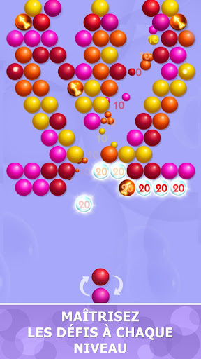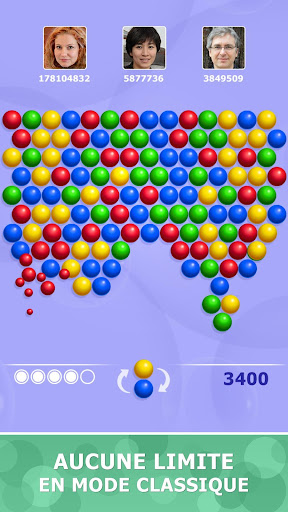 Bubblez: Magic Bubble Quest c\est le web-jeu le plus populaire qui est accessible à présent pour Android. Des couleurs pétillantes et tout plein de drôles sons vous permettront d\oublier le triste des jours sombres de quotidien et vous régaleront par une simple partie. Les traits du jeu: 3 modes de jeu: Classique, Aventure et Arcade 3 modes de jeu différents dans Classique: mode Collectionneur, mode Tireur et mode Blitz De nombreux puzzles en mode Aventure Plus de 1400 niveaux de tir à bulles en mode Arcade La joie pour tous les âges, de 5 à 95 4 niveaux de la difficulté du novice à l\expert La compétition en ligne montera vos talents La pelure changeante des boules Version complète du jeu gratuitement Jouez à bubble shooter pour profiter des multiples explosions amusantes sur votre Android. Le but de ce jeu est de détruire toutes les boules en les regroupant de la même couleur en 3 ou plus. C\est tout simplement la question de votre habileté – un attouchement leger de votre doigt sur la grappe pour faire le feu. Choisissez le mode Aventure et montrez la logique et les compétences de tir à bulles pour passer de nombreux niveaux difficiles. L\objectif change à chaque niveau, ainsi que les bonus dispersés sur le plateau. Récupérez les clés, percez des boules gelées et de pierre, tirez sur la foudre pour déclencher une avalanche de bulles ou éclater des bulles en essayant de battre le score de vos amis! Choisissez le mode Arcade et amusez-vous pendant des heures pour passer plus de 1400 niveaux. Testez vos compétences d\éclatement de bulles et atteignez l\objectif de niveau avant de manquer de mouvements. En fait, c\est une tâche assez difficile, car chaque niveau a ses propres balles spéciales que vous devrez gérer. Débarrassez-vous du filet qui empêche les bulles adjacentes de tomber ou frappez Bomb pour faire éclater toutes les bulles adjacentes. Appuyez et maintenez pour viser et obtenir un score plus élevé. Utilisez plusieurs power-ups pour gagner 3 étoiles dans chaque niveau d\arcade à bulles. Enfin, choisissez le mode Classique pour vous détendre et oublier la routine quotidienne. Choisissez l\un des trois modes classiques. Dans le mode de Collectionneur votre but est gagner le résultat le plus grand possible. Dans le mode de Tireur c\est le nombre de coups qui est important. Le moins de coups vous faites pour nettoyer le champ, votre résultat est meilleur. En mode Blitz, marquez autant de points que possible dans le temps imparti et devenez l\un des meilleurs joueurs des classements. Montrez vos talents de tireur de bulles ! Vous pouvez aussi jouer à 4 niveaux de la difficulté pour améliorer vos talents graduellement. Choisissez votre propre moyen de jouer à ce jeu. Bénéficiant de Bubblez: Magic Bubble Quest? En savoir plus sur le jeu! Facebook: https://facebook.com/Absolutist.games Site Internet: https://absolutist.com YouTube: https://www.youtube.com/@AbsolutistGames Instagram: https://www.instagram.com/absolutistgames Twitter: https://twitter.com/absolutistgame Avez-vous des questions? Contactez notre support techniqu à support@absolutist.com