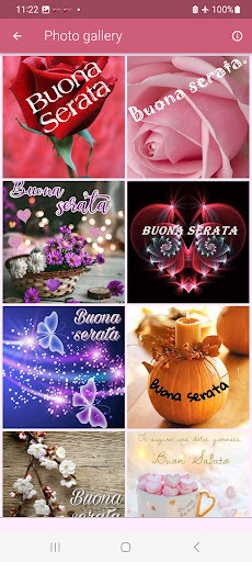 Buongiorno e Buonanotte Buon Pomeriggio Buona Serata gratis in italiano , Questa applicazione ti aiuterà a trovare le immagini con bei messaggi e frasi è esercitare il potere che abbiamo per influenzare la giornata di qualcuno e farli sentire speciali. Per mantenere e rafforzare i legami di amore e amicizia con i tuoi cari attraverso belle frasi legate a belle immagini che trasmettono tranquillità, ottimismo, amore, gratitudine e tutti i buoni sentimenti della vita che le frasi di Buongiorno pomeriggio e notti. Allora sei nel posto giusto. Abbiamo progettato un\eccellente applicazione \Belle frasi di buongiorno pomeriggio e sera\ è l\ideale per salutare tutti i nostri cari. Ricorda che è importante essere sempre in contatto attraverso messaggi emotivi per ogni giorno. Lo lasciamo a portata di mano in un solo clic, scarica la nostra app e goditi al massimo questa applicazione \FRASI DEL BUONGIORNO\ Condividi ogni giorno un saluto a chi pensi ne abbia bisogno o semplicemente per rallegrare la giornata di qualcuno. Questa applicazione contiene una galleria di immagini selezionate che piaceranno senza dubbio a tutti. \Buongiorno Saluti, pomeriggio e sera\ ti offre una variegata raccolta di frasi con bellissime cartoline o cartoline di buon pomeriggio.