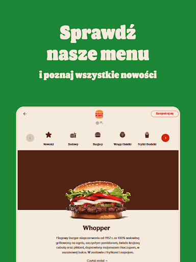 Pobierz aplikację Burger King i ciesz się królewskim jedzeniem w wyjątkowych cenach! Królewskie Kupony Odkryj różnorodność naszego menu i wybieraj spośród dostępnych ofert, które pozwolą Ci zaspokoić głód bez obciążania portfela. Nowe kupony pojawiają się regularnie, nie przegap najlepszych okazji! Sprawdź nasze menu Uwielbiasz nasze burgery? Teraz możesz mieć nasze menu w swojej kieszeni! Informacje o restauracjach Sprawdź informacje o najbliższej restauracji Burger King i godzinach otwarcia!