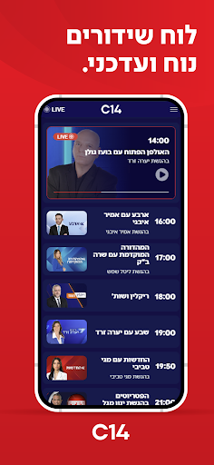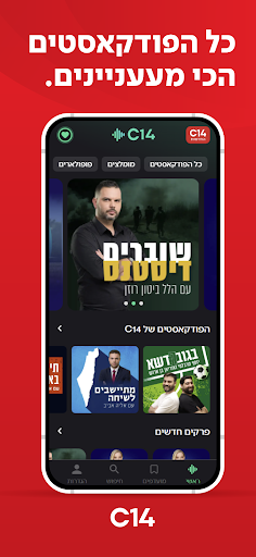 האפליקציה הרשמית של ערוץ 14 מביאה אליכם את כל התוכן במקום אחד: חדשות, שידורים חיים, תוכניות הדגל, פודקאסטים בלעדיים וספריית VOD מלאה - לצפייה והאזנה בכל זמן. הורידו עכשיו את C14 - ותישארו מחוברים למה שחשוב באמת.