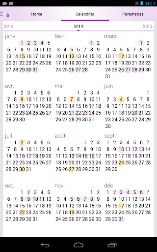 Calendrier des règles / Suivi des règles Lilly Journal des règles est un calculateur d\ovulation et de grossesse offrant aux femmes des prévisions exactes sur les jours de menstruation, d\ovulation et de fertilité. Calendrier Menstruel Lilly apprend de vos entrées et fait une meilleure prédiction des périodes futures et fenêtres fertiles à travers le temps, nous utilisons toutes les méthodes scientifiques à jour disponibles pour suivre et planifier votre cycle. Utilisation de Lilly est facile, notez les jours des regles sur le calendrier, installez des rappels du cycle menstruel, enregistrez vos symptômes et humeurs (syndrome prémenstruel), utilisez le calculateur de date, le calendrier de grossesse et contrôlez votre santé. Suivi des règles Lilly pour les règles irrégulières ou régulières. L’application permet de suivre vos chances de grossesse au quotidien, la glaire cervicale, l\IMC , les rapports sexuels , la température , les symptômes ou les humeurs , tout comme votre journal personnel des règles. Quand allez vous avoir vos règles ? Vous suivez facilement votre cycle grâce au calendrier des règles Lilly. Utilisez Suivi des jours de règles Lilly pour : - Suivez le cycle menstruel et les regles - Obtenez la date de vos prochaines règles (calendrier menstruel) - Suivez les jours favorables pour la conception (calendrier de fertilité) - Analysez vos cycles actuels et passés (suivi menstruel) - Notez la date de début et fin des règles et l\écoulement menstruel - Suivez la température de base - Rappels en temps opportun sur les menstruations à venir, fenêtres fertiles, l\ovulation, et quand votre période est en retard - Les rappels de contrôle des naissances, contraceptifs, qui incluent la pilule, le patch et la protection d\anneau - Changez les textes de rappel - Une vue de calendrier unique qui vous permet de planifier à l\avance et de voir si la période tombe à la date d\un événement ou d\un rendez-vous, ou au milieu de vos vacances. - Protection de confidentialité de code PIN - Traceur de température basale avec deux décimales de précision et graphiques faciles à utiliser - Notez les résultats des tests de grossesse (positif ou négatif) - Rapports sexuels protégés ou non protégés - Regardez le graphique de la TBC et d\ovulation - Enregistrez l\historique des cycles et symptômes Nous voulons de vos nouvelles! Envoyez vos commentaires et suggestions à contact@smsrobot.com. Profitez de vos règles de suivi et de l\ovulation
