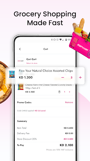 Cari: Your Local Super App Food? Groceries? Flowers? Medicine? Diapers? Laundry? Even a Personal Assistant? CARI’s got it all, delivered in 30 minutes or less. Your life. One app. Hey, life happens! Whether you’re craving a meal, need groceries, flowers, or medicine, or even need a personal assistant to run errands for you. Cari brings it all right to your doorstep in Kuwait. Think of us as your personal delivery hero – making more time for the things you love. Why You\ll Love Cari: • 30-MINUTE DELIVERY: Hungry or need something quick? Skip the wait and get it fast. • UNLIMITED FREE DELIVERIES: Subscribe to Cari Unlimited and enjoy endless free deliveries and exclusive benefits. All of our restaurants are on Cari Unlimited! It’s the only subscription truly designed with foodies in mind. • STRESS-FREE GROUP ORDERS: Ordering for the squad? We’ve got you covered with our easy Group Order feature. • DAILY DEALS & NEW FLAVORS: Score special offers, and discover the freshest new restaurants daily. • GET PAID TO EAT: That’s right! Earn cashback as you spend on limited offers and exclusive campaigns. • BEYOND FOOD: New services such as Laundry, Fuel Up, CashDrop, House Keeping, Booking hotels, Booking flights and a Personal Assistant to help run any errand you might think of. All the Loved Brands, Only a Tap Away: In Kuwait: • Burger Bliss: BBT, Thinnies, Johnny Rockets, Eighty Six, Beak, and more. • Pizza Party: Pizza Hut, Yelo Pizza, Little Caesars Pizza, Caesar’s – need we say more? • Sushi Sensations: Maki, Finger Sushi, Oishii Sushi, and beyond. • Sweet Treats: UR Cookies, Melenzane, Marble Slab Creamery, and others. • Local Legends: Tabel, Deboned, WK and more. Cool Features You’ll Love: • TRACK YOUR TREATS: Real-time order tracking so you know exactly when your delivery’s arriving. • SAFE & SECURE PAYMENTS: Pay by credit card or cash on delivery - your choice. • QUALITY YOU CAN TRUST: Fresh, high-quality meals and essentials delivered with a smile. • GROUP ORDER GOODNESS: Simplify group dining with our seamless Group Order feature. New Additions to Spice Things Up: • Cari Unlimited: Available in Kuwait. Free delivery, exclusive discounts, and more! • Personalized Picks: Discover top recommendations and local favorites tailored for you. • Cari Cart: Transform your grocery shopping with our super convenient Cari Cart. • Beyond Food: Fuel, Housekeeping, Laundry, Flight & Hotel booking, Personal Assistant, Groceries, Flowers, Medicine, Baby & Mama needs – if you need it, we deliver it! Need Help? Got questions? Hit us up at hello@getcari.com. Love Cari? We\re almost 3 years old, growing & staying local. Please rate us and help us serve you better – you’re truly important to us!