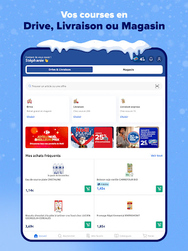 Avec Carrefour France, simplifiez vos courses et gagnez du temps grâce à notre application Carrefour. Organisez vos achats en toute simplicité, que ce soit en Drive, en livraison à domicile ou directement en magasin. Parcourez nos catalogues exclusifs, retrouvez vos produits préférés et bénéficiez d’une expérience intuitive, pensée pour répondre à vos besoins au quotidien. Pourquoi choisir l’application Carrefour ? 1. SIMPLIFIEZ VOS COURSES QUOTIDIENNES L’application Carrefour vous accompagne pour faire vos courses rapidement et facilement. Accédez à vos produits préférés, explorez des offres personnalisées et consultez les catalogues saisonniers. Ajoutez vos articles à votre panier en un clic, créez des listes organisées et optimisez votre temps, même pendant vos journées les plus chargées. Vous pouvez également consulter l’historique de vos achats pour retrouver vos achats fréquents en un instant. 2. DRIVE, LIVRAISON, MAGASIN : DES OPTIONS FLEXIBLES POUR TOUS Que vous préfériez le retrait en Drive, la livraison à domicile ou faire vos courses directement en magasin, Carrefour s’adapte à votre emploi du temps. Grâce à ces options flexibles, vous pouvez choisir ce qui convient le mieux à votre mode de vie. Planifiez vos achats à l’avance, évitez les files d’attente et faites vos courses en toute sérénité. 3. DES CATALOGUES ET DES OFFRES EXCLUSIVES POUR UN HIVER RÉUSSI En cette saison hivernale, profitez d’offres exceptionnelles sur une large gamme de produits. Explorez nos catalogues, des produits bio et locaux, ou encore des promotions sur le multimédia et l’électroménager. Préparez vos repas et vos fêtes en toute sérénité grâce à des bons plans conçus pour répondre à vos attentes. Les catalogues sont régulièrement mis à jour pour que vous ne manquiez aucune promotion. 4. UNE FIDÉLITÉ RÉCOMPENSÉE TOUT AU LONG DE L’ANNÉE Avec la carte de fidélité Carrefour, faites vos courses tout en cumulant des avantages ! Gagnez des euros sur vos achats, bénéficiez d’offres exclusives et retrouvez vos bons de réduction directement dans l’application. Carrefour transforme chaque passage en magasin, chaque retrait en Drive, ou chaque livraison à domicile en une opportunité d’économiser davantage. Accédez également à des promotions exclusives réservées aux membres fidèles. 5. UNE APPLICATION SIMPLE AVEC DES OFFRES PERSONNALISEES Avec une interface intuitive et sécurisée, l’application Carrefour rend vos courses encore plus simples. Suivez vos commandes en livraison, préparez vos retraits en Drive ou gérez vos achats en magasin. Chaque fonctionnalité est conçue pour vous faire gagner du temps et de l’argent, tout en garantissant une expérience fluide. L’application inclut également des notifications personnalisées pour vous avertir des promotions ou des nouveautés adaptées à vos besoins. 6. UNE GAMME DE PRODUITS RICHE ET RESPONSABLE Carrefour répond à toutes vos attentes grâce à une sélection variée : produits frais, bio et locaux, festifs ou technologiques. Explorez nos catalogues et découvrez des promotions sur une large gamme d’articles, pour un shopping responsable et économique. Faites vos courses en toute confiance, que ce soit en ligne ou en magasin. Retrouvez également une sélection de produits éthiques et écoresponsables pour un quotidien plus durable. Téléchargez l’application dès aujourd’hui ! Organisez vos courses, explorez nos catalogues, optez pour le Drive, la livraison ou rendez-vous en magasin. Carrefour vous accompagne au quotidien pour rendre vos achats plus pratiques, économiques et adaptés à vos besoins. Avec Carrefour, chaque moment compte : facilitez vos courses, découvrez des bons plans exclusifs et profitez d’un service pensé pour vous. Simplifiez votre hiver et profitez d’une expérience unique dès maintenant ! Avec Carrefour, on a tous droit au meilleur, au meilleur prix !