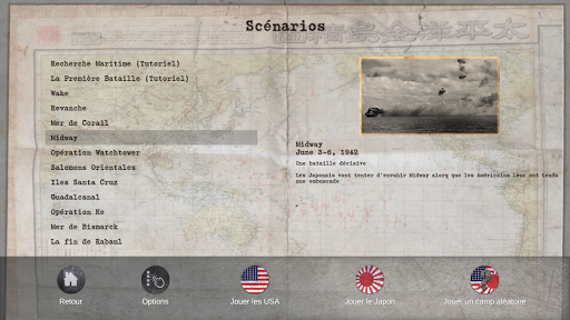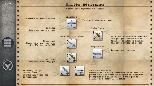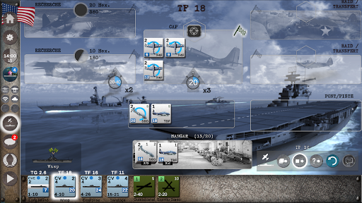 CARRIER BATTLES 4 GUADALCANAL est un wargame historique classique. Il couvre les batailles aéronavales qui ont eu lieu durant la guerre du Pacifique en 1942-1943. Trouvez les forces de votre adversaire et frappez les avant qu’elles ne découvrent vos précieux porte-avions, tout en les empêchant d’envahir les bases essentielles du théâtre des opérations ou en soutenant vos propres assauts amphibies. • Jeu en Solitaire contre une puissante IA américaine ou japonaise • 11 scénarios historiques : Coral Sea May 42, Midway June 42, Eastern Solomon Aug 42, Santa Cruz Oct 42, Guadalcanal Dec 42, Bismarck Sea March 43, Rabaul nov 43, Guadalcanal fev 43, Guadalcanal août 42, raids us mars 1942, wake décembre 41. • Des cartes différenciées, à une échelle de 30 miles par hexagone • 80 types d’avions et navires historiques • Recherches aéronavales ou au radar, accumulation progressive des renseignements sur les forces adverses • Frappes aériennes contre des cibles navales ou terrestres, batailles navales • Système de dégâts avancé • Invasion, bombardement naval • Jeu en tour par tour • Un didacticiel simple et facile à prendre en main pour guider le joueur dans les profondeurs du système de jeu • disponible en Anglais, Français et Espagnol, Japonais, Chinois, Italien • Pas besoin de connexion Internet pour jouer contre l’AI Durée de jeu moyenne: 1h00 à 3h00.