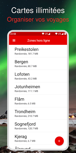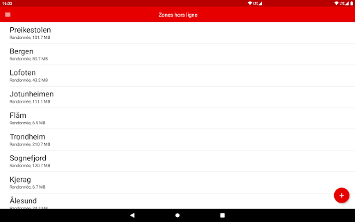 Carte de la Norvège pour Android est la carte la plus détaillée de la Norvège. L\application convient aux randonneurs, touristes et promeneurs. • Télécharger la carte pour une utilisation hors ligne • Navigation GPS avec carte et compas à rotation automatique • Rechercher des lieux et des adresses • Sentiers détaillés pour la randonnée, le vélo et la marche • Cartes maritimes de la côte norvégienne précises • Expérience sans publicité ** Cartes hors ligne ** L\application vous permet de télécharger n\importe quelle zone à afficher en mode hors connexion. Il suffit de zoomer sur votre zone préférée et de cliquer sur le bouton \télécharger\ dans le coin inférieur gauche. L\application va télécharger la zone qui est actuellement sur votre écran. Vous pourrez nommer vos zones téléchargées pour les organiser facilement.