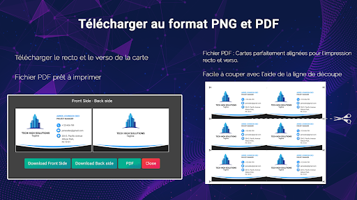 Créer une carte de visite comme un concepteur professionnel de cartes de visite et imprimez-la facilement. Les cartes de visite numériques sont très utiles pour partager des contacts. Vous voudrez peut-être changer la conception de l\entreprise ou de la carte de visite souvent, il vous suffit de remplir votre profil et de télécharger votre carte de visite numérique à tout moment. Créateur de cartes de visite avec logo, application photo Caractéristiques: - Concevez une carte de visite en une minute. - 2 étapes simples. Remplissez la page de profil (nom, adresse, phone) et choisissez un modèle. Votre carte de visite est prête à télécharger - Plus de 300 modèles de cartes de visite. - Concevez les deux côtés simultanément. - Facile à utiliser - Fonction avancée comme le générateur de code QR, l\éditeur de logo. - Concevoir comme un graphiste professionnel avec des outils. - Symbole prédéfini comme mobile, email, site web, location, Facebook, Twitter, Linkedin, etc ... - Logo pour tous les domaines et professions (homme d\affaires, commerce, vente, graphiste, photographe, médecin, avocat, ingénieur, construction, famille, infirmier, assistant de bureau, personnel) - Imprimer l\ image amicale et HD Télécharger - Partager l\ image numérique carte de visite à WhatsApp, facebook, etc Créer affaires Conception de cartes de visite : Vous pouvez créer différents types de cartes de visite selon vos besoins. Vous pouvez choisir un modèle de carte de visite pré-rempli ou créer votre propre modèle à partir d\un modèle vierge. Gérer les profils: Vous pouvez créer des profils utilisateur (nom, adresse, numéro de téléphone, adresse électronique, etc.) pour lesquels vous souhaitez créer une carte de visite en français. Gérer les cartes de visite - Enregistrez, téléchargez et modifiez votre carte à tout moment, où que vous soyez. Que pouvez-vous faire avec Business Card Maker, créateur de carte de visite & Designer? * Ajoutez le texte, l\ image, les formes, les logos et insérez votre propre image .. * Choisissez la conception arrière - plan, la couleur ou des dégradés * Texte : Modifier le texte, l\ ombre, un coup de bordure, la couleur du changement, dégradé de couleur, l\ opacité, Clone, supprimer * image : couleur de remplissage , Ombre, opacité, etc. * Logo: creation de logo, choisissez un logo dans la galerie d\applications or sélectionnez votre propre logo d\entreprise sur votre téléphone. L\application de création de cartes de visite a plus de 300 designs créatifs. Les conceptions graphiques faites avec le concepteur de carte de visite ressemble à la carte de visite créée par le graphiste professionnel (design professionnel). La carte de visite virtuelle, carte de visite numérique commercialisera votre entreprise. Vos conceptions créatives impressionnent toujours vos clients. L\éditeur de carte de visite hors ligne vous permet de modifier votre carte de visite à tout moment. Modèles de cartes de visite simples, classiques et modernes 2022. Les modèles de cartes de visite vous aident à créer les meilleures cartes. Vous pouvez également créer un code QR à partir d\Internet et ajouter l\image à la carte de visite. L\application scanner de carte de visite va scanner votre carte de visite plus rapidement. Les dernières créations de cartes de visite créatives seront ajoutées chaque mois L\application de création de cartes de visite (Visiting card maker) est disponible en 9 langues: anglais, français, espagnol.