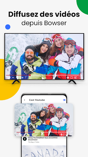 Cast for Chromecast & TV Cast\\ vous aide à diffuser facilement votre téléphone sur la télévision dans les plus brefs délais. L\application Cast to TV vous aide également à profiter de votre bibliothèque sur tout type de téléviseur intelligent comme Chromecast, Roku, Fire TV, Xbox, Samsung, LG. TV, et plus encore. Avec l\application Cast to TV, vous n\êtes plus ennuyé parce que l\écran est trop petit, ce qui affecte grandement vos yeux, et vous pouvez profiter de vous asseoir n\importe où simplement en regardant l\écran. Cast for Chromecast & TV Cast peut afficher toutes vos photos, vidéos, jeux et autres applications sur un écran plus grand avec la même connexion Wi-Fi. C\est une application parfaite pour partager et diffuser du contenu avec une haute qualité et une vitesse en temps réel. Vous pouvez également rechercher et diffuser facilement vos émissions de télévision préférées à tout moment sur votre écran de télévision grâce à la mise en miroir d\écran. L\application Cast to TV permet la mise en miroir d\écran pour Chromecast : vous pouvez diffuser des vidéos et des photos depuis votre téléphone vers Chromecast. Il est également facile à utiliser pour diffuser du contenu sur la télévision avec d\autres appareils. De plus, l\application Cast to TV vous permet de diffuser des films tendance et la meilleure musique sur la télévision de manière aussi rapide et stable. Cette application Casting vous aidera à refléter l\écran de votre téléphone sur une télévision intelligente. Screencast en direct, depuis un mobile vers d\autres appareils et d\Android vers un téléviseur. Activez le miroir TV et avec le smart cast pour démarrer la pratique des exercices de fitness sur l\écran du téléviseur. Partagez l\écran et le téléviseur connectez-vous au mobile pour présenter votre présentation avec le flux en direct avec un grand écran réfléchissant. Périphériques compatibles: • Chromecast • Roku • FireTV, Xbox • Téléviseurs intelligents : Sony, Samsung, LG TV,... Principales caractéristiques: • Diffusez facilement sur la télévision par téléphone. • Mise en miroir de l\écran de votre téléphone sur le téléviseur • Diffusez des photos, des vidéos,... sur Smart TV • Découvrez la musique en jouant au jeu sur un écran plus grand. • Contrôlez Smart TV par téléphone Comment utiliser: • Étape 1 : Votre téléphone et votre Smart TV doivent être connectés au même réseau Wi-Fi. • Étape 2 : Activez l\affichage sans fil et Miracast sur votre téléviseur. • Étape 3 : Choisissez et connectez-vous à votre Smart TV sur l\écran du téléphone. • Étape 4 : Vous êtes prêt à utiliser. Essayez toutes les fonctionnalités de notre application !! Cette application n\est pas affiliée à Google ou à toute autre marque mentionnée.