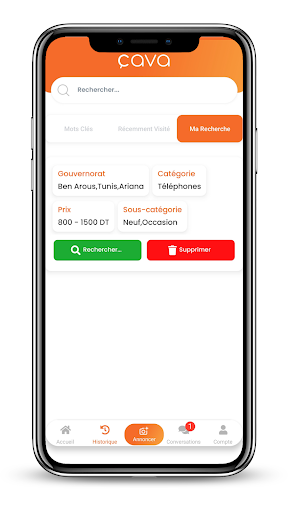 Cava.tn : Achetez, vendez, louez et chatter sur notre plateforme web et mobile en pleine croissance qui permet d\acheter et vendre localement d\une manière très simple . Gagnez de l\argent en vendant ce dont vous n\avez plus besoin et trouvez de bonnes affaires près de chez vous. Téléphone, immobilier, Electronique, jeux, vêtements, voitures, mobilier, décoration tayara et bien plus. Application Cava.tn n\est pas seulement une nouvelle façon d\acheter et vendre localement. C\est aussi une manière étonnamment simple de le faire. Des dizaines d\acheteurs et vendeurs ont déjà téléchargé Cava.tn . Voici pourquoi : • RAPIDE ET INNOVANT : Postez votre annonce en quelques secondes seulement : photographiez, publiez, chatter et vendre • FACILE, ÉLÉGANT ET SIMPLE : Cava.tn vous fait découvrir des bonnes affaires près de chez vous parmi une vaste sélection de biens. Cherchez près de chez vous ou un bien spécifique. Chattez instantanément avec des acheteurs et vendeurs locaux directement dans l\application. • La CROISSANCE : Oubliez l\utilisation de sites webs vieux et compliqués. Rejoignez les dizaines d\utilisateurs qui utilisent déjà Cava.tn gratuitement, dans toute la Tunisie et vendent des centaines de milliers de biens chaque jours. Cava.tn est disponible dans toute la Tunisie gratuitement: Ariana, Béja, Ben Arous, Bizerte, Gabés, Gafsa, Jendouba, Kairouan, Kasserine, Kébili, LeKef, Mahdia, Manouba, Médenine, Monastir, Nabeul, Sfax, Sidi Bouzid, Siliana, Sousse, Tataouine, Tozeur, Tunis, Zaghouan Besoin d\aide ? Nous sommes toujours disponible 24/7 ! Contactez-nous à contact@cava.tn