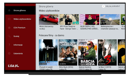 Oglądaj filmy z cda.pl oraz uzyskaj dostęp do telewizji na żywo. Ponad 90 kanałów m. in. TVP, TVP 2, Polsat, TV4, Telewizja WP, Zoom, History, BBC, Filmbox i dziesiątki innych. Oglądaj filmy z cda.pl bezpośrednio na telewizorze. W aplikacji możesz przeglądać najpopularniejsze filmy dodane przez społeczność oraz uzyskać dostęp do filmów i seriali premium. CDA Premium to ponad 12000 filmów i seriali dostarczonych przez oficjalnych i zweryfikowanych dystrybutorów filmowych. Oglądasz legalnie i w najlepszej jakości prosto ze swojego smartfona. Filmy dostępne są z polskim lektorem lub napisami, a bajki z dubbingiem. Korzystając z CDA Premium wspierasz legalnych dystrybutorów i producentów. Materiały dostarcza między innymi Monolith, Kino Świat (Canal+), BestFilm, Media4Fun, M2Films, SPI czy Nowe Horyzonty. Umowa licencyjna Pobierając aplikację potwierdzasz, że przeczytałeś i akceptujesz Regulamin świadczenia usług oraz Politykę prywatności. Ich treść znajdziesz tutaj: https://www.cda.pl/regulamin https://www.cda.pl/prywatnosc