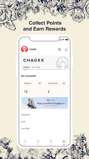 Get rewarded for skipping the queue! Start earning points by ordering through our App today! With the CHAGEE App, you can: -Order and pay digitally -Order for self-pickup ahead of time -Earn Points and redeem rewards at our Rewards Store -Earn Experience to reach higher tiers for greater benefits -Stay up to date on new launches and deals -Locate our outlets and their operating hours Download and enjoy welcome discounts now!