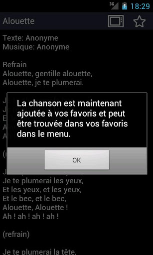 Il y a plus de 200 chansons dans ce recueil de chansons! Vous trouverez des chansons pour enfants, des chants et des chansons franҫaise. Voir la liste des chansons sur http://chansons.venabili.com Comme un bonus supplémentaire, le recueil contient aussi plus de 350 chansons en provenance de l\Allemagne, plus de 200 chansons en provenance de l\Espagne, plus de 200 chansons en provenance du Danemark, plus de 200 chansons en provenance de la Suède, plus de 200 chansons en provenance de la Norvège, et plus de 400 chansons en provenance des Pays-Bas. Avec un simple click sur \RECHERCHE SUR YOUTUBE\, vous pouvez entendre la plupart des chansons. C\est une façon drôle et intéressante d\écouter les chansons les plus connues. Si vous ne trouvez pas la chanson que vous recherché, vous avez aussi la possibilité d\ajouter une chanson t de la voir sous Favoris. Elle sera simultanément envoyé à une base de données et peut être inclues dans le recueil de chansons de sorte que tout le monde puisse en profiter. Toutes les chansons sont stockées sur une base de données sur l\internet, mais en ajoutant une chanson à vos favoris, vous pouvez la rendre disponible hors connexion. Des chansons seront ajoutées régulièrement. Notes: Il n\ya pas de notes et d\accords dans le recueil de chansons. Pour le moment, toutes les chansons du recueil sont libres de droit, c\est à dire que l\auteur est mort depuis plus de 70 ans.