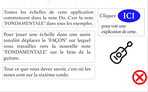 Ce est la version sans publicité. - Il présente plus de 150 échelles de musique de la musique à travers le monde qui sont utiles pour n\importe quel musicien jouant n\importe quelle sorte de musique sur la Guitare. - Il montre comment chaque échelle est écrite sur le pentagramme, y compris les noms des notes et le Structure de l\échelle. - Vous pouvez écouter l\échelle. - Il montre les notes de chaque échelle sur une Guitare virtuel afin que vous puissiez y jouer. - Il présente deux FAÇONS pour jouer chaque échelle sur deux octaves sur la guitare. - Vous pouvez sélectionner l\appareil que vous utilisez (télephone ou tablette) afin que vos doigts s\adaptent mieux à la taille de la guitare virtuelle. Ce sont les échelles incluses dans cette application: 1. Acoustic Scale 2. Aeolian 4. Ahava Rabboh 5. Altered Dominant 6. Altered Locrian b4 7. Altered Mixolydian 8. Altered Pentatonic 9. Ama Lama Cooma Scale 10. Bartok Scale 11. Bebop Dominant 13. Bebop Jazz Minor 14. Bebop Melodic Minor 15. Blues Scale 16. Blues Scale 2 17. Brown-eye Rabbit Scale 21. Diminished Blues 22. Dominant 7th Scale 23. Dominant Bebop 29. Dorian 33. Dorian Hexatonic 34. Dorian Pentatonic 35. Dorico Flamenco 38. Double Harmonic Minor 40. Down in the Valley Scale 41. Enigmatic Mode 1 44. Freygish 45. Half Tone Scale 46. Half-Whole Diminished 47. Harmonic Major 48. Harmonic Major Inverse 49. Harmonic Major Mode 2 54. Harmonic Major Mode 7 55. Harmonic Minor 57. Harmonic Minor Mode 2 62. Harmonic Minor Mode 7 63. Haul Away Joe Scale 64. Hira-joshi 65. Hira-joshi Mode 4 66. Hon-kumoi-joshi 67. Hungarian Major 68. Hungarian Minor 69. In-sen 70. Ionian 71. Ionian #5 72. Ionian Hexatonic 73. Jazz Melodic Minor 74. Jazz Melodic Minor Mode 2 80. Jazz Minor Inverse 81. Kokin-joshi 82. Kookaburra Scale 83. Leading Whole Tone 84. Little Sally Water Scale-Childhood Chant 85. Locrian 86. Locrian #2 87. Locrian bb7 88. Locrian nat 6 89. Lydian 90. Lydian #2 91. Lydian #5 92. Lydian Augmented 93. Lydian b7 94. Lydian Diminished 95. Lydian Dominant 96. Lydian Hexatonic 97. Lydian Minor 98. Major Augmented Scale 99. Major b6 Scale 100. Major Bebop 101. Major Bebop Mode 7 102. Major Locrian 103. Major Pentatonic 104. Major Pentatonic Mode 1 108. Major Pentatonic Mode 5 109. Major Scale 110. Major-Minor Scale 111. Melodic Minor 112. Mi Sheberach 113. Minor Gypsy 114. Minor Gypsy Inverse 115. Minor Locrian 116. Minor Pentatonic 117. Minor Scale 118. Minor-Major Scale 119. Min\yô 120. Mixolydian 121. Mixolydian b6 122. Mixolydian Bebop 123. Mixolydian Hexatonic 124. Miyako Bushi 125. Natural Minor Scale 126. Neapolitan Major 127. Neapolitan Major Mode 2 128. Neapolitan Major Mode 4 129. Neapolitan Major Mode 5 130. Neapolitan Minor 131. North Wind Scale 132. Overtone Scale 133. Phrygian 134. Phrygian b4 138. Phrygian-Mixolydian 139. Prometheus 140. Prometheus (Liszt) 141. Prometheus Neapolitan 142. Ring Around the Rosie Scale 143. Ritsu 144. Rock Minor Scale 145. Row, Row Mode 4 146. Row, Row Mode 5 147. Row, Row Scale 148. Ryûkû 149. Spanish Major 150. Spanish Scale 8-Note 151. Super Locrian 152. Super Locrian bb7 153. Suspended Pentatonic 154. Threshing Song Scale 155. Verdi’s Enigmatic Ascending 158. Zeg moeder Scale Connaître les échelles qui existent dans la musique vous aide à jouer de la guitare, écrire les paroles d’une chanson, ou composer toutes sortes de musique: soit classique ou populaire. Si vous aimez la composition musicale, vous devez avoir cette application et d\explorer plus de 150 échelles musicales à utiliser lors de l\écriture de la musique pour instruments à vent, instruments à cordes ou tout type d\instruments de musique. Il est également un outil indispensable dans l\improvisation musicale dans des styles comme le jazz, rock, blues et plus.