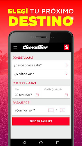 Nueva Chevallier es una empresa que cuenta con más de 80 años en el mercado y ahora seguimos creciendo para poder llevarte a donde querés llegar. Con nuestra nueva app, solamente tenés que buscar el destino que tanto querés y empezar a disfrutar el viaje. Además vas a poder aprovechar las mejores promociones con hasta 50% de descuento sin tener que registrarte. Descargá gratis la aplicación, seleccioná origen y destino del micro, buscá la fecha, comprá y listo: ya tenés los pasajes en tu smartphone. Encontrá tips de viaje y conocé las comodidades de nuestros micros. Cuando estés en viaje vas a poder ver tu ubicación y cuánto falta para que llegues a tu destino, así podes compartirlo con quién quieras vía Whatsapp.