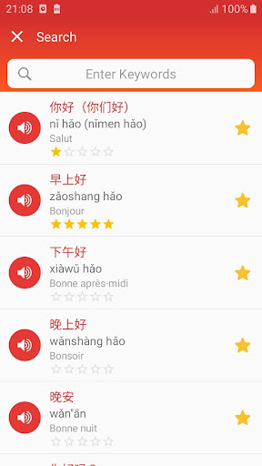 Apprendre le chinois est un outil facile à utiliser Phrasebook chinois mobile qui permettra aux visiteurs de la Chine et ceux qui sont intéressés par l\apprentissage du chinois un bon départ dans la langue. FONCTIONNALITÉS * 1200 + mots et expressions courantes. * Liste traduite soigneusement des phrases essentielles * Rappelez apprendre des mots ou des phrases * Pas de connexion Internet nécessaire CATÉGORIES Contient plus de 1200 phrases essentielles dans les catégories suivantes \Salutations\ \Conversation générale\ \Nombres\ \Heure et date\ \Orientation et Places\ \Transport\ \Hébergement\ \Manger à l\extérieur\ \Achats\ \Couleurs\ «Régions et Villes\ \Des pays\ \Attractions touristiques\ \La famille\ \Sortir ensemble\ \Urgence\ \Se sentir malade\ \Tongue Twisters\ «phrases de circonstance\ \Parties du corps\ Développé par Awabe.