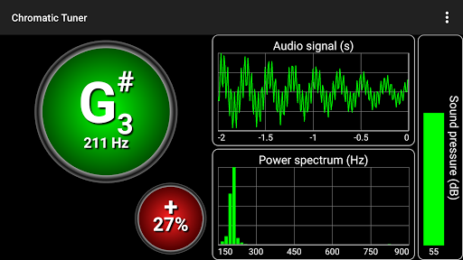 Accurate and fast chromatic tuner with wide range covering C0(16Hz) - B8(7902Hz). All music instruments are supported even human voice. Application is plotting sound waves and its frequency (power) spectrum in real-time. Features: * Tuning modes * Real-time waves plotting options * Sensitivity calibration * A4 calibration * Frequency precision settings * Refresh rate settings * Note-naming convention settings Tuning modes: * Guitar (E2,E4) * Violin (G3,E5) * Viola (C3,A4) * Cello (C2,A3) * Bass (E1,G2) * Piano (A0,C8) * Human Voice (C2,D6) * Max Frequency Range (C0,B8) Pro version contains no ads or nag screens.