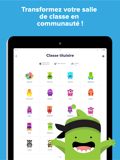 Êtes-vous prêts.es à créer une communauté scolaire extraordinaire ? ClassDojo est une excellente application de communication, sécuritaire et simple, destinée aux enseignants.es, aux parents et aux élèves. * Les enseignants.es peuvent encourager les élèves pour toutes les compétences, telles que \Travailler avec rigueur\ et \ Esprit d\équipe \. * Les enseignants.es peuvent amener les parents à participer à l\expérience de la classe en partageant des photos, des vidéos et des communiqués. * Les élèves peuvent facilement ajouter leurs travaux de classe à leurs propres portfolios numériques pour que leurs parents puissent les consulter. * Les enseignants.es peuvent également envoyer des messages instantanés, et en toute sécurité, à n\importe quel parent. * Les parents peuvent suivre les mises à jour de leur enfant à la maison, ainsi que des photos et des vidéos de l\école. * Tous les outils préférés pour le personnel enseignant, comme le Créateur de groupes et le Bruit-o-mètre, sont maintenant réunis en un seul endroit ! ClassDojo aide les enseignants.es à créer un climat de classe positif en encourageant les élèves et en communiquant avec les parents. ClassDojo est gratuit pour tous: les enseignants.es de la maternelle à la 5e secondaire, les parents, les élèves et les membres de la direction des écoles, dans plus de 180 pays qui l\ont rejoint. Il est compatible avec tous les appareils, comme les iPhones, iPads, tablettes, téléphones et tableaux intelligents Découvrez combien les gens aiment ClassDojo sur : www.classdojo.com/wall-of-love/ Rejoignez la communauté ClassDojo dès aujourd\hui !