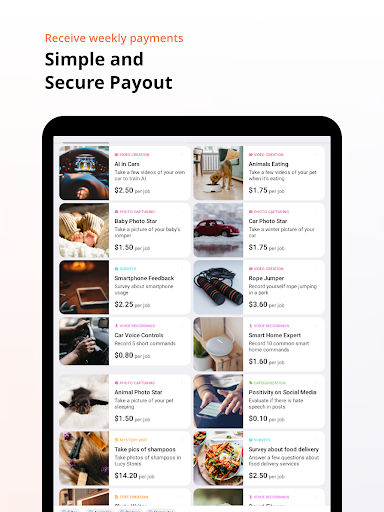 Gagnez de l’argent facilement avec votre téléphone intelligent, à la maison ou en déplacement. Les personnes du monde entier peuvent devenir membres de la communauté de Clickworker. Vous vous connectez simplement en passant par l’application mobile ou en utilisant votre ordinateur, vous réalisez des petites tâches et vous gagnez un peu d’argent de poche. Il y a une grande variété de tâches disponibles: Sondages Recherche en ligne Tests d’applications mobiles Enregistrements audio et vidéo Photographies de clients mystères / Visites de magasins Rédaction et correction de textes Catégorisation de données Et beaucoup plus de petits travaux... Il y a beaucoup à faire, parfois plus, parfois moins ! Ça vaut absolument la peine de se connecter tous les jours sur l’application mobile de clickworker. Devenir un clickworker est super facile: 1) Enregistrez-vous en ligne ou en passant par l’application mobile 2) Remplissez votre profil afin que nous en apprenions plus à votre sujet 3) Commencez à effectuer vos premières tâches en ligne 4) Pour que le travail reste intéressant et amusant, vous devriez idéalement passer quelques-uns des tests afin de vous qualifier pour des tâches supplémentaires. 5) Recevez vos revenus une fois par semaine par un virement sur votre compte PayPal. Vous avez encore d’autres questions au sujet de ce genre de travail ? Contactez-nous directement ou connectez-vous sur notre forum pour en discuter avec de nombreux autres Clickworkers !