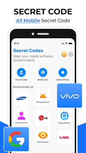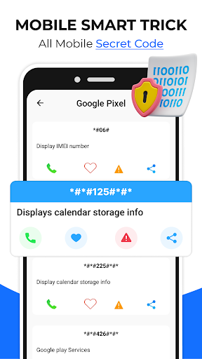 Codes secrets mobiles pour Android pour déverrouiller les menus cachés de votre smartphone. L\application Secret Codes vous donne des codes USSD et des codes de piratage pour toutes les grandes marques de téléphones mobiles. Les codes USSD, ou \codes secrets\, sont simplement des codes qui sont utilisés pour déverrouiller des fonctionnalités cachées dans votre smartphone. Vous pouvez désormais déverrouiller les portails cachés de vos téléphones Android et casser les menus cachés en utilisant les trucs et astuces des codes secrets mobiles. Au fur et à mesure que de nouvelles itérations du système d\exploitation Android sont publiées, tous les codes secrets / codes de piratage sont régulièrement mis à jour. Vous pouvez également accéder au portail secret d\Android et à ses services en utilisant ces codes secrets et chiffrements mobiles. L\application des codes secrets vous fournit également une liste des codes de pays des numéros de téléphone. Cette application de codes mobiles vous aide à examiner les téléphones Android avant d\acheter, comme vous le pouvez, à détecter la version du système d\exploitation et à vous assurer que vos données importantes sont sauvegardées. Vous pouvez avoir la liste de tous les codes secrets Android, les codes de piratage, y compris les codes secrets pour déverrouiller les mots de passe du téléphone Android, le test WLAN, le menu de service, la récupération des modèles oubliés, les informations sur le matériel, les informations sur le logiciel, les informations sur la machine, l\affichage du numéro IMEI, la version du micrologiciel. informations, PDA, Super Mode, Tester la photographie RVB, Vérifier la mise à jour, le mode de test GPS, Réinitialiser l\appareil, Réseau, Déverrouiller l\appareil, Mode d\ingénierie, GPS, Bluetooth, tests d\usine, et bien d\autres. Comment décoder les codes secrets Le processus de décodage des codes secrets (Hack codes) est assez simple. Téléchargez l\application des codes secrets, sélectionnez la marque, vous obtiendrez une liste de tous les numéros de code secret sur l\écran de votre mobile Android. Pour exécuter n\importe quel révélateur de code secret Android, il vous suffit d\appuyer sur l\option de numérotation et il renverra une réponse automatiquement. Vous pouvez enregistrer et partager vos codes secrets/codes mobiles préférés avec vos amis. Tous les appareils mobiles prennent en charge les codes secrets/codes Android, alors obtenez des conseils et astuces sur les codes secrets mobiles pour tous les ensembles Android. Secret Code application Fonctionnalités incroyables Tout dans un seul livre de codes secrets sur les multiples mobiles Android Tous ces codes téléphoniques sont écrits correctement pour fonctionner. Sélectionnez n\importe quelle marque Android pour révéler les codes secrets Aucune autorisation spéciale n\est nécessaire pour télécharger l\application et l\utiliser codes mobiles Le code secret Android est une application hors ligne, pas besoin d\avoir Internet connexion pour utiliser l\application Tous les codes secrets mobiles sont testés avec les vrais appareils Android Vous offre une variété de trucs et astuces mobiles Vous donner une liste complète des codes téléphoniques des pays Hacks et astuces mobiles Android utiles Numéros IMEI mobiles Informations sur la version du micrologiciel Logiciel & amp; Informations WH Informations sur la version du logiciel Codes de verrouillage/déverrouillage SIM Conseils de réinitialisation de l\appareil Astuces de déverrouillage de l\appareil Recevez un avertissement lorsque vous dépassez votre limite de données ️Codes de hachage️ L\application Codes secrets et hacks Android est conçue pour les utilisateurs expérimentés. Les utilisateurs mobiles de base, les pirates mobiles et les voleurs de téléphones ne sont pas son public cible.