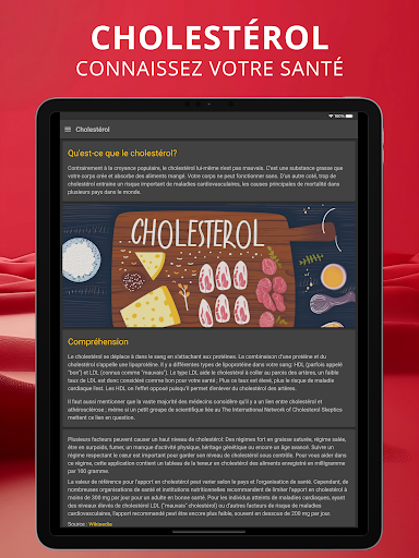 Prenez soin de la santé de votre cœur avec Cœur Ami. Cette application vous aide à suivre et gérer facilement votre cholestérol, votre pression artérielle et votre poids. Que vous cherchiez à améliorer votre régime alimentaire ou à rester au top de vos indicateurs de santé, Cœur Ami dispose des outils dont vous avez besoin. POURQUOI CŒUR AMI ? * Infos rapides sur le cholestérol, les graisses et les protéines : Découvrez la teneur en cholestérol, en graisses et en protéines de divers aliments. Cela vous aide à maintenir un régime bon pour le cœur. * Surveillez votre pression artérielle et votre poids : Gardez un œil sur les variations de votre pression artérielle et de votre poids grâce à des graphiques clairs et des statistiques. * Calculateur nutritionnel : Calculez le cholestérol, les graisses et les protéines de vos repas. Cela rend plus facile le suivi de ce que vous mangez. * Informez-vous sur la santé du cœur : Obtenez des informations utiles sur la manière dont le cholestérol affecte votre santé et comment mieux manger. CARACTÉRISTIQUES CLÉS * Facile à démarrer : Ouvrez l\application et utilisez-la immédiatement, sans besoin de vous inscrire ou de vous connecter. * Prévenir les maladies : Utilisez nos conseils pour éviter les maladies liées à un taux élevé de cholestérol et à de mauvaises habitudes alimentaires. * Soutenez votre régime : Nos listes d\aliments vous aident à choisir des aliments bons pour votre cœur. COMPRENDRE LE CHOLESTÉROL Le cholestérol n\est pas entièrement mauvais, mais en excès, il peut conduire à des maladies cardiaques et des AVC, principales causes de décès dans le monde. Apprenez à gérer vos niveaux et à garder votre cœur en bonne santé. CONSEILS POUR UN MODE DE VIE SAIN De mauvaises habitudes alimentaires, le tabagisme et un manque d\exercice peuvent augmenter votre cholestérol. Nous proposons des changements simples que vous pouvez faire pour réduire votre risque et améliorer la santé de votre cœur. PASSEZ PREMIUM POUR PLUS * Sans publicités : Utilisez l\application sans interruptions. * Meilleurs calculateurs : Obtenez des informations détaillées pour les portions et les repas. * Suivi avancé : Plus d\outils pour suivre votre pression artérielle et votre poids. PRÊT À AMÉLIORER VOTRE SANTÉ ? Téléchargez Cœur Ami maintenant et commencez à contrôler votre cholestérol et votre pression artérielle dès aujourd\hui. Voyez ce qui se trouve réellement dans votre nourriture et prenez des mesures pour une meilleure santé.