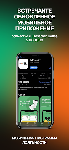 Покупай вкуснейший натуральный кофе в один клик от CoffeeUnity. С каждого оплаченного стакана ты будешь получать кешбэк бонусами на следующие покупки. Скачивай и скорее смотри, где ближайшая к тебе точка!