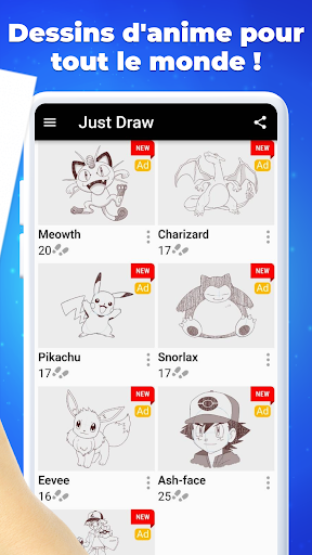 Comment dessiner des animes - Il suffit de dessiner est une application pour apprendre à dessiner pas à pas des personnages d\anime et de manga. Il vous suffit de prendre une feuille de papier et un crayon, de choisir le dessin que vous aimez et de suivre les instructions étape par étape. C\est très facile à utiliser. Cette application vous apprend à dessiner vos personnages d\anime, de dessins animés et de manga préférés. Vous trouverez également des dessins d\animaux, de voitures et bien d\autres encore. Vous pouvez choisir plusieurs dessins de différentes catégories. Il est idéal pour les personnes sans compétences en dessin et parfait pour que vos enfants s\amusent tout en apprenant à dessiner leurs personnages préférés de la télévision. Avertissement : Tous les personnages de dessins animés, de mangas et d\animes représentés dans cette application sont la propriété de leurs propriétaires respectifs. L\utilisation de dessins pour analyser étape par étape comment dessiner est à des fins éducatives uniquement. Aucune violation de droits d\auteur n\est intentionnelle. Cette application vous aide à comprendre comment dessiner des personnages de Poke : - Nezuko - de Demon Slayer - Pikach - Tanjiro - Kakashi Vous avez toujours rêvé d\apprendre à dessiner ? Et vous ne saviez pas comment dessiner l\homme-araignée ? Alors notre application d\apprentissage est parfaite pour vous. Comment dessiner Spider Boy Easy est un tutoriel de dessin unique. Nous avons préparé pour vous plus de 25 leçons de dessin. Tout ce dont vous avez besoin, ce sont quelques feuilles de papier, des crayons de couleur ou des marqueurs, nos tutoriels et un peu de patience. Tous les tutoriels sont classés par difficulté et sujet : vous pouvez dessiner un homme-araignée ordinaire, ou vous pouvez dessiner à partir du film Spider-Boy No Way Home. Comment dessiner Spider Boy facilement et étape par étape - convient aussi bien aux artistes expérimentés qu\à ceux qui apprennent simplement à dessiner leurs personnages préférés d\anime et de cinéma. Curieux de savoir comment dessiner des personnages de Poke ? Alors Comment dessiner Poke est l\application dont vous avez besoin. Nous avons préparé une application de tutoriel de dessin très simple pour vous. En une seule soirée, vous pouvez dessiner tous les personnages d\anime de Poke. Pour commencer à dessiner, prenez quelques feuilles de papier, des crayons de couleur ou des feutres et n\oubliez pas d\être de bonne humeur. Comment dessiner Poke étape par étape ? C\est très simple, croyez-moi. Il suffit de répéter chaque étape et le résultat ne tardera pas à venir. Offrez à vos proches votre dessin d\anime Choisissez le personnage préféré de votre ami de Demon Slayer SPYxFamily et commencez à apprendre à le dessiner. Vous pouvez chercher n\importe quel dessin de personnage dans l\application et obtenir des leçons de tutoriel étape par étape. L\application vous aide à apprendre à dessiner des anime rapidement. Après avoir