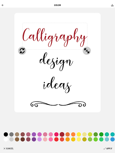 Vous cherchez des idées de conception de calligraphie? Cette application de créateur d\art propose des conceptions de calligraphie inspirantes et des créations artistiques sans fin. Il vous aidera à trouver des idées pour des compositions artistiques uniques et créatives, des ornements décoratifs, des citations inspirantes, des lettres illustrées, des polices cursives et beaucoup de beaux styles d\écriture. L\une des principales caractéristiques de notre application de création d\art calligraphique est la possibilité de personnaliser vos créations en mode édition. Ajustez la taille, la couleur et le style de votre calligraphie pour créer une œuvre d\art vraiment unique avec votre propre texte, comme une citation ou votre nom. L\application dispose également d\un mode caméra AR pour vous permettre de démarrer facilement avec la création d\art d\écriture de calligraphie. Placez votre appareil au-dessus d\un papier et tracez les lignes de votre idée de dessin calligraphique préférée. Cette application de création d\art calligraphique prend en charge les fonctionnalités suivantes : - Une collection infinie d\idées de conception de calligraphie de haute qualité - Des feuilles de travail et des fiches d\exercices, y compris des alphabets, pour améliorer vos compétences - Citations inspirantes pour pratiquer l\écriture manuscrite - Enregistrez vos créations d\écriture de calligraphie préférées - Mode caméra AR pour vous aider à apprendre la calligraphie - Choisissez votre propre niveau de difficulté - Des centaines de styles d\écriture manuscrite, allant du lettrage ornemental au pinceau - Les styles de calligraphie traditionnels et les exemples d\écriture modernes - Idées de décoration élégantes, avec de jolis tourbillons et fioritures - La possibilité d\entrer votre propre devis ou nom - Ajoutez des emojis à votre art calligraphique - Mode d\édition pour changer les polices et les styles, faites glisser et amp; déposer pour repositionner des éléments, faire pivoter des éléments, modifier l\espacement des lettres, ajouter ou copier du texte et des images La version pro de cette application de création de calligraphie propose également : - Accès à toutes les polices cursives et pinceaux - La possibilité d\ajouter de nouveaux textes, comme une citation ou votre nom - Suppression des publicités La calligraphie est une ancienne forme d\art de la calligraphie axée sur une belle écriture manuscrite. Aujourd\hui, ce type décoratif d\écriture manuscrite est toujours populaire. Il est utilisé pour décorer des textes, des logos, des menus, des cartes postales, des articles de papeterie de mariage et des documents en formant, arrangeant et décorant les formes et les symboles des mots. La calligraphie est un excellent moyen de se détendre et de laisser libre cours à sa créativité. Explorez des exemples de calligraphie traditionnelle et moderne dans cette application de créateur d\art. La calligraphie traditionnelle implique la pratique de certains styles d\écriture et vise une forme uniforme de lettres avec des proportions fixes. La calligraphie moderne, parfois appelée « fausse calligraphie », est une grande tendance de ces dernières années. Il s\appuie sur les principes fondamentaux de la calligraphie traditionnelle, mais ne suit pas ses règles strictes, ce qui permet plus de liberté pour jouer et créer des œuvres d\art uniques. Dans la calligraphie moderne, souvent différents styles sont combinés dans une seule composition. Que vous soyez novice en calligraphie ou maître calligraphe, apprenez à écrire et stimulez votre créativité avec cette application d\idées de conception de calligraphie! Si vous avez des questions, des commentaires ou des suggestions, veuillez contacter support@wienelware.nl