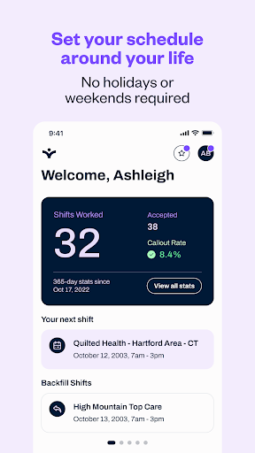 Your Time, Your Schedule, Earn What You Deserve Are you an RN, LPN, STNA, CNA or GNA looking for on-demand shifts? ConnectRN reinvents the way clinicians find per-diem work. Use the connectRN mobile app to find shifts that match your preferences We\re more than just an employer, we’re a community. Work shifts with friends, connect with per diem clinicians, discover mentors to look up to, access continued education opportunities, find support from your peers, etc. Perks & Rewards On top of earning great flexible pay, our clinicians get access to a vast selection of rewards & benefits from STATcash (same day pay) to unlimited referral bonuses! For more information, visit us at connectrn.com If you are a hospital administrator, connectRN capabilities include: -Shift communication for improved staffing -real time ‘shift-fill’ and better utilization of the per diem nursing staff -Policy Acknowledgement and Tracking -Credentialing management with hard stops for compliance -Critical and General alerts to keep your staff up to date with all necessary information For Nurses, connectRN allows you to: -Manage your schedule to work for you -See and apply for available shifts at pre-selected health care institutions on your smartphone -Control when and how you want to be contacted (no more blanket texts and repeated phone calls from the hospital scheduling teams) -Keep credentialing up to date at multiple health care institutions with auto reminders and support -build your profile to highlight your skills and experience so you can get more of the shifts you want We are solving a real problem and would like to speak further with you about using connectRN at your facility. We are active in most major cities across the US. The easiest to use nursing jobs app platform for finding: Massachusetts nursing jobs / New Jersey nursing jobs / Ohio nursing jobs / Pennsylvania nursing jobs / Virginia nursing jobs / Florida nursing jobs / Maryland nursing jobs / North Carolina nursing jobs / Colorado nursing jobs / Indiana nursing jobs / Rhode Island nursing jobs / Connecticut nursing jobs / New York nursing jobs / California nursing jobs / Texas nursing jobs / Arizona nursing jobs and many more! Please contact us at info@connectrn.com with questions.