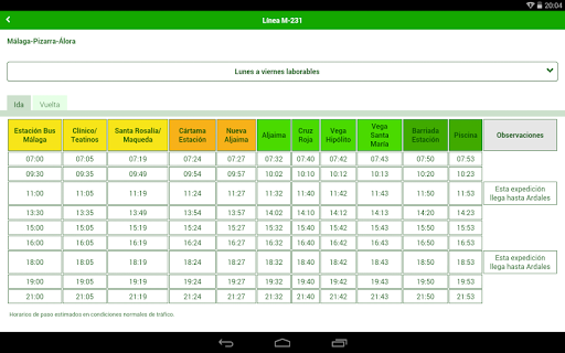 Ahora puedes consultar toda la información de nuestras líneas, horarios, puntos de venta y tarifas desde tu dispositivo móvil. Si tu terminal dispone de lector NFC compatible con Mifare Classic también puedes consultar el saldo de tu tarjeta. Incluye información de transporte público (autobuses, Metro de Málaga, Renfe Cercanías y bicicletas) relativa a los municipios de Alhaurín de la Torre, Alhaurín el Grande, Almogía, Álora, Antequera, Benalmádena, Cártama, Casabermeja, Colmenar, Coín, Fuengirola, Málaga, Mijas, Pizarra, Rincón de la Victoria, Riogordo, Torremolinos, Totalán, Valle de Abdalajís y Villanueva de la Concepción.