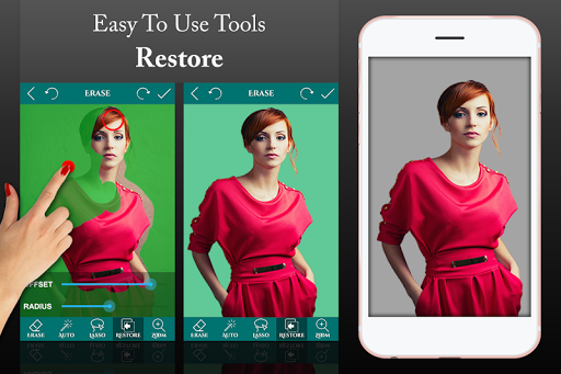 Contexte ultime Eraser offre un moyen rapide et facile de changer les photos de milieux. Il suffit de toucher la zone que vous souhaitez effacer et l\outil Gomme automatique fera le reste du travail pour vous. Vous pouvez également effacer vos photos fond manuellement par toucher du doigt ou avec Lasso (Photo Cutting) outil. Supprimer fond de vos photos et enregistrer l\image transparente au format PNG ou JPG! Les images obtenues peuvent être utilisées comme des timbres avec d\autres applications pour faire une photo-montage, collage ou avec un beau fond (Utilisez notre Fond ou le vôtre). Caractéristiques: ***** Auto Erase - One Touch Suppression Fond ***** Effacez Manuel - Finger Rub Retrait arrière-plan ***** Lasso Eraser (Couper Photos ou couperer Photos Out) - Zone de sélection Retrait arrière-plan ***** Restore - Récupération Finger Rub de fond ***** Undo, Redo & Zoom - Pour un résultat précis ***** Sauver partager - Enregistrer sur carte SD & Partager sur les médias sociaux Le meilleur utilitaire pour supprimer les milieux à partir de photos. Essayez maintenant!!