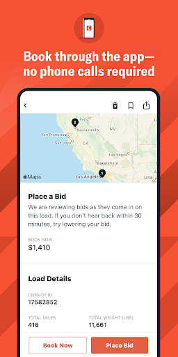 The Convoy app makes it easy for carriers to find, bid on, and haul loads from trusted brokers that keep their trucks full and earning on the lanes they like to run. With everything done quickly and easily through the Convoy app, you’ll spend less time chasing freight, and more time on what matters. With the Convoy app, you can: MAXIMIZE EARNINGS • Find, bid on, and win loads 24/7—no phone calls required • Get paid fast with Convoy QuickPay • Request no-hassle detention or lumper payment codes within the app REDUCE HASSLE • Find and manage work right from your phone • See broker, shipper and facility names and addresses on every load • Upload documents to streamline bookkeeping • Track your fleet’s locations and arrival times with GPS • Get automatic alerts when loads are available on your preferred lanes SEE ALL THE LOADS • Sign up and book your first loads quickly - no matter the size of your business • Get free access to thousands of nationwide loads from trusted brokers • Book everything through the app and overcome the pitfalls of phone negotiations, like haggling, language barriers, and cultural biases We operate in the contiguous 48 states. Sign up through the Convoy app. The Convoy Platform is owned and operated by Flexport Freight Tech LLC.