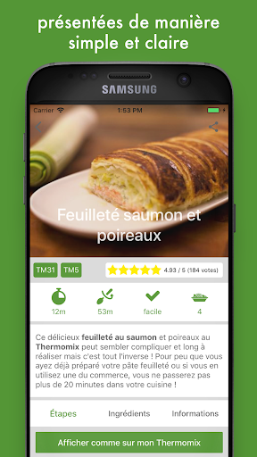 Cookomix est une application d\échange de recettes adaptées au Thermomix et aussi compatibles pour d\autres robots comme Monsieur Cuisine, Digicook, Companion, Compact Cook, Miogo Maestro et bien d\autres. Découvrez-y les meilleures recettes Thermomix écrites et commentées par la communauté et présentées de manière simple et lisible comme sur votre appareil ! Ajoutez vos propres recettes, sauvegardez dans votre carnet vos préférées et partagez vos coups de coeur avec vos amis ou d\autres membres ! Revenez quotidiennement sur l\application: il y a au moins 4 nouvelles recettes publiées chaque semaine ! A propos de Cookomix Premium : Cookomix est 100% gratuit car l\application est financée grâce à la publicité. Cependant avec Cookomix Premium vous pouvez si vous le souhaitez soutenir Cookomix en souscrivant à un abonnement via un achat in-app. Celui-ci vous permettra de supprimer la publicité dans l\application, de pouvoir imprimer les recettes avec une mise en page optimisée et de bénéficier d\autres avantages. Il est ainsi possible de s\abonner directement dans l\app pour 1,49€ par mois ou 11,49€ par an. L\abonnement est sans engagement de durée et peut-être annulé à tout moment en vous rendant dans votre compte. A propos des liens vers Amazon : Sur certaines recettes, Cookomix peut vous proposer des articles recommandés pour la recette. En tant que Partenaire Amazon, Cookomix peut ainsi réaliser un bénéfice sur les achats remplissant les conditions requises.