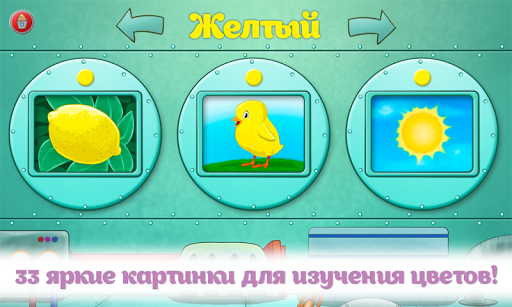 \Couleurs Enfants d\apprentissage» est un jeu simple et passionnant apprentissage pour les plus jeunes enfants. Il présentera les couleurs étonnantes de notre monde à votre bébé, avec le processus éducatif d\être drôle et excessivement intéressant. Avec aucun effort, les tout-petits vont apprendre à nommer les couleurs, et de les associer à différents objets comme les fruits et les animaux. Avantages du jeu: - Le jeu sera facilement apprendre à votre enfant de onze différentes couleurs: rouge, rose, gris, marron, violet, bleu, vert, jaune, orange, blanc et noir un. Chaque couleur est livré avec trois images drôles lumineux correspondant à l\ombre. - Les couleurs et les images sont nommées en quatre langues: anglais, français, russe et espagnol. Cela permet à l\enfant d\apprendre plus de 40 mots étrangers, qui seront très utiles pour l\étude plus approfondie des langues. Chaque mot est prononcé clairement et distinctement. - Un mini-jeu fascinante mosaïque derrière la porte en bois aidera à renforcer les compétences nouvellement acquises et de former la mémoire de l\enfant. La petite souris grincement drôle qui sortait du trou dans le coin de la chambre chaque fois et tout vifs le jeu. - L\interface de jeu est très simple et intuitive. Même les plus jeunes enfants pourront jouer sur leur propre. Comment jouer: - Apprenez vos couleurs. Le \sous-marin\ porte est pour apprendre les couleurs. Après vous l\ouvrez, vous serez montré une certaine couleur, avec son nom étant prononcée. Puis, un par un, le jeu révèle trois images d\illustration pour correspondre à la couleur. Par exemple, de citron, de Sun, et poulet illustrent la peinture jaune. L\enfant sera amusé par les images caricaturales lumineuses qui rendent le processus éducatif très divertissant. - Testez vos connaissances. La porte \Bois\ est pour le mini-jeu. Venez pour vérifier les compétences de reconnaissance de la couleur de votre enfant et de réviser les noms des couleurs. L\enfant doit correspondre à chacune des trois fenêtres peintes à la trame de couleur similaire. Si les morceaux sont tirés ensemble correctement, l\enfant va entendre un mot d\éloge. - Mettre le tout dans des roquettes! Sous la porte de l\avion est une station de fusée avec trois vaisseaux de couleur différente en attente d\être rempli de passagers et lancé. Passagers intention sont en attente dans la ligne, la tâche est de trouver des correspondances de couleurs. - Peignez-les tous! Sous la porte de l\espace est un jeu de coloriage avec 10 images derrière enlumineurs. Choisissez un illuminateur, touchez la palette et de commencer à attirer votre chef-d\œuvre. La palette propose rouge, bleu, rose, violet, orange, jaune, brun, gris, vert et peintures blanches. Le jeu offre trois photos d\illustration pour chaque couleur. Mais vous pouvez ajouter par demander à votre enfant à nommer quelques objets de couleur similaire. Cette formation peut contribuer au développement cognitif de votre enfant par l\amélioration de son mémoire et la pensée logique. .