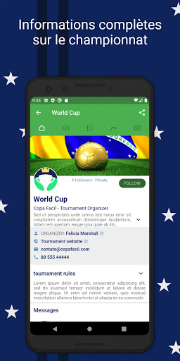 Organisez facilement votre propre tournoi de sport ou d\eSport avec Coupe Facile ! Avec une grande variété de sports, de types de tournois et de fonctionnalités, cette application est le choix idéal pour ceux qui veulent créer des tournois personnalisés et gérer toutes les informations importantes en un seul endroit. Avec Coupe Facile, vous pouvez publier des résultats, des classements, des photos, des vidéos et des actualités, ainsi que profiter de classements de joueurs, de sondages et de votes, de pièces jointes de documents, d\impression de compte-rendus et de tableaux, de partage d\images de résultats, d\inscriptions et de nombreuses autres fonctionnalités. L\application convient à plusieurs sports, y compris le football, le futsal, le handball, le basketball, le volleyball, le tennis, le tennis de table, MOBA (LOL, DOTA), Battle Royale (Fortnite, Free Fire, Call of Duty) et les jeux de tir. De plus, vous pouvez créer des tournois avec plusieurs catégories, comme des divisions d\âge ou séparées par genre. Coupe Facile offre également un système complet pour gérer votre tournoi. Vous pouvez ajouter des modérateurs pour vous aider à éditer le tournoi, envoyer des liens pour l\inscription des équipes, ajouter des bannières de sponsors, des insignes d\équipe et des photos de joueurs, partager sur les réseaux sociaux et plus encore. Essayez dès maintenant la meilleure application pour créer des tournois de sport et d\eSport. Téléchargez Coupe Facile et commencez à organiser votre propre tournoi dès aujourd\hui !