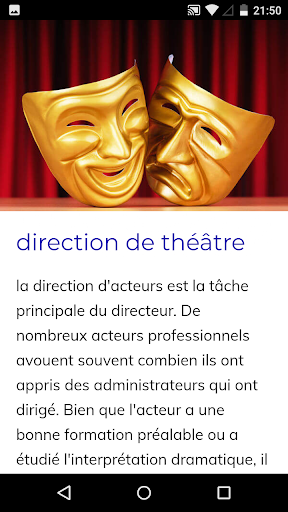 Cours de théâtre, apprendre les techniques de base de l\expression corporelle et de la créativité pour faire vos premières incursions dans le monde des arts de la scène. Adapter les principes d\action au développement personnel. Utilisez le bouton \Sélectionner la langue\ pour changer la langue.