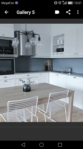 Le style scandinave emprunte aux habitants du Nord froid. La nature elle-même inspire les gens à utiliser les teintes givrées habituelles à l\intérieur. Le soleil est un visiteur rare dans les régions du nord, donc son absence compensée par un grand nombre de points de lampes, de rubans brillants, de lumières. De grandes fenêtres sont également inhérentes à ce style, et les fenêtres peuvent même être sur le toit. Le blanc brillant, l\argent, les miroirs, le verre, les surfaces de chrome reflètent les rayons, rendant la maison plus spacieuse et la remplissant de fraîcheur. La cuisine scandinave se caractérise par un mobilier et un équipement fiables, fonctionnels et esthétiques, qui ne prennent pas beaucoup de place. Dans une telle cuisine, il est agréable de cuisiner et d\être. Selon l\agencement de la pièce, l\unité de cuisine peut être droite (un mur), en forme de L, en forme de U ou de fragments placés et possède des îlots de cuisine. Pour une petite cuisine dans le style de cuisine scandinave, une façade légère est préférée sans éléments de premier plan (par exemple, blanc avec des comptoirs en bois mou). Maximiser l\utilisation de l\espace vertical le casque doit être haut, presque au plafond. Dans les grandes maisons, la salle à manger se combine souvent avec le salon. Les meubles pour la salle à manger sont assez légers mais durables. Habituellement, la table et les chaises en bois ou en métal, qui regarde harmonieusement sur le fond de la cuisine et le salon, si elle est combinée avec la cuisine. Trouver l\inspiration pour la conception de la cuisine scandinave vous aidera à photographier les idées que nous avons recueillies pour vous dans cette application.
