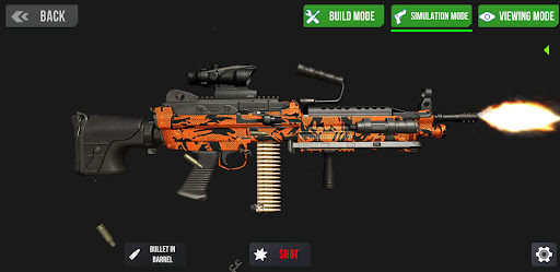 Custom gun simulator est un constructeur d\armes en 3D qui vous permet de construire des armes comme vous le souhaitez. Essayez et personnalisez les armes les plus puissantes du monde avec une grande sélection de pièces, d\accessoires, d\optiques, de viseurs laser et de points rouges et de camos pour toute situation de combat. Créez une arme unique et personnalisée avec notre jeu ! C\est une combinaison entre la construction et le simulateur d\armes à feu ! Le simulateur d\armes à feu personnalisé vous permet de tout faire virtuellement, d\éteindre la sécurité, d\ajuster le sélecteur de tir, de chambrer et de tirer vos armes préférées. Vous pouvez choisir de construire des fusils d\assaut, des armes de poing ou des fusils de chasse et plus encore. Après avoir terminé la personnalisation, verrouillez et chargez et commencez à tirer , ne vous inquiétez pas pour les munitions, elles sont illimitées ! Ce jeu de construction d\armes ne comprend pas d\achats il tout complètement gratuit ! Caractéristiques de Custom gun simulator 3D champ de tir stimulant avec des missions chronométrées. grand arsenal : M4A1 M16, AK-47, Glocks, sniper, mitrailleuses et bien d\autres. personnalisation du soldat avec arme à feu en 3D. simulateur de sons d\armes à feu graphismes haute définition FPS gun camera 3D gun simulator jeu de réalité augmentée simulateur de tir avec arme personnalisée chaque arme est entièrement personnalisable divers camos vous permettent de créer des peaux d\armes personnalisées. flash light & slow-motion jeux de simulation d\armes avec une mécanique de construction d\armes. Téléchargez le jeu de simulateur d\armes gratuit et amusez-vous avec des armes virtuelles uniques, des pistolets, des RPG et des sons d\armes réalistes !
