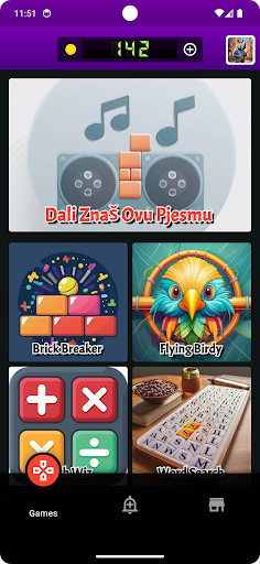 Misliš da znaš muziku? Testiraj svoje znanje uz ovu zabavnu igricu! Preslušaj prvih 30 sekundi pjesme i pokušaj da pogodiš njen naziv. Sakupi bodove i otključaj nove nivoe sa sve težim pjesmama! Sakupi što više bodova i upiši svoje ime na tabelu majstora muzike. Možeš i ti postati zvezda! Počinjemo sa Pop/Pop Rock muzikom, a zatim otključavamo Folk, Hip Hop, Sevdah/Sevdalinku, Metal, Turbo Folk i druge stilove iz Srbije, Bosne i Hercegovine, Hrvatske, Makedonije i još mnogo toga. Pored ove, tu su i druge igre kao što su Brick Breaker, Flying Birdy i Word Search. Zabavi se i otkrij sve mogućnosti!