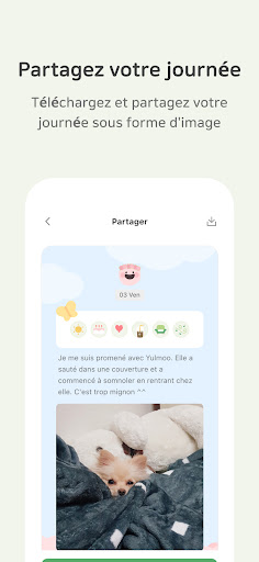 DailyBean est une application de journal simple pour ceux qui veulent enregistrer facilement leur vie quotidienne. Enregistrez votre journée avec seulement quelques onglets! DailyBean fournit ces fonctions. ○ Calendrier mensuel qui vous donne un aperçu de votre flux d\humeur Si vous cliquez sur le haricot, vous pouvez vérifier immédiatement l\enregistrement que vous avez laissé ce jour-là. ○ Appuyez sur les haricots d\humeur et les icônes d\activité pour un enregistrement simple Choisissons votre humeur du jour et résumons la journée avec des icônes colorées. Vous pouvez ajouter une image et une ligne de notes. ○ Blocs de catégories qui vous permettent de sélectionner uniquement les catégories que vous souhaitez Les blocs peuvent être ajoutés ou supprimés quand vous le souhaitez, et les catégories seront mises à jour en permanence. ○ Statistiques qui analysent l\humeur et l\activité sur une base hebdomadaire/mensuelle Regardez votre humeur à travers les statistiques et voyez quelles activités affectent votre humeur. Vous pouvez également vérifier le nombre d\enregistrements d\icônes sur une base hebdomadaire et mensuelle. Si vous avez des questions ou des inconvénients lors de l\utilisation de l\application, veuillez nous contacter ici! Mail: harukong@bluesignum.com Instagram: https://www.instagram.com/harukong_official/