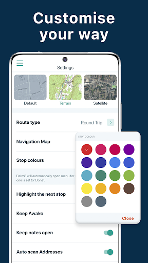 Delm8: Your Ultimate City Navigation & Route Planner App Are you tired of generic postcode navigation apps that only take you to the general area, leaving you lost when trying to make precise courier deliveries or pickups? Say goodbye to inefficiency & wasted time & use Delm8 Route Planner - the most recommended, accurate navigation & route planner app in the UK, trusted by drivers up and down the country. Navigate smarter with Delm8 Route Planner the most accurate address finder & city navigation app. Navigate locations & postcodes, locate addresses, plan routes & save an hour a day. Delm8 Route Planner is not your average route planner. Our innovative app is built with the specific needs of drivers in mind, making it effortless to pinpoint named addresses such as farms, cottages, & even new builds anywhere in the UK while efficiently optimising routes. No more wasted time circling around postcode area. With Delm8 Route Planner, you navigate straight to the front door of every property with ease. Join countless users who have experienced the power of Delm8 Route Planner. Our algorithms are designed to help you find any address across the UK, ensuring that you reach your destination with pinpoint accuracy, leaving no room for error. With a wide array of features & functionalities, Delm8 Route Planner goes beyond traditional multiple stop route planner apps to offer solutions tailored to your needs. Whether you\re delivering parcels, couriers mapping city streets, or exploring new locations, Delm8 Route Planner is your ultimate companion on the road. KEY FEATURES: Navigation: Say goodbye to inaccurate postcode-based navigation & hello to precision address finding. Navigate to your stops using popular map options such as Google Maps, Waze, Sygic, TomTom, RoadLords, What3Words & others. Pinpoint Named Properties: Easily locate specific properties such as farms & cottages with precision. Efficiency: Save time with direct routes to named addresses. View all your stops on a map & plan your route around specific addresses instead of just postcodes, ensuring the most accurate & efficient route. Customer Support: Count on our dedicated team to assist you with any issues or inquiries promptly. Set Expected Arrival Times: Enhance customer satisfaction by prioritising your stops with expected arrival times. Mark Stops as Collections or Premiums: Categorise stops as collections or premiums to prioritise deliveries effectively. Scan & Go: Save time by scanning postcodes directly into the app using your phone’s camera, eliminating manual input. ️ Edit Stops: Make on-the-fly adjustments to your stops with a hassle-free editing feature. Colour Code Your Stops: Organise & prioritise your stops with customisable colour coding. Share Routes: Share your route via popular apps such as WhatsApp, Telegram, Gmail, & more, making coordination with colleagues a breeze. Notes: Add & edit notes for each stop, keeping important details at your fingertips. Set Stops as Succeeded/Failed: Track completed & failed stops to streamline your workflow. List View: Organise your destinations with an address list, keeping everything organised. Sync Routes Across Platforms: Upload & download routes to sync them across multiple devices for seamless route management. Save Stops as Favourites: Keep track of your most frequented stops by saving them as favourites. Drop Pins: Add stops to your route by simply dropping a pin on your desired location. Get Delm8 Route Planner today & experience the difference! TERMS & CONDITIONS: - Enjoy a week long free trial upon registration. - Charges depend on your mobile platform (Android or iOS) and chosen plan. - Subscriptions renew automatically unless cancelled 24 hours before renewal. - Cancel subscriptions via your Delm8 route planner app. - We\re not liable for disputes with third parties related to the service.